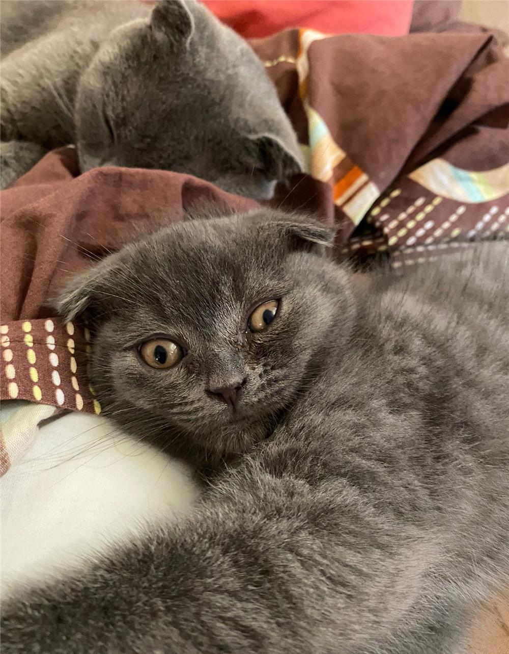 2 puiuți scottish fold dornici să își găsească familia potrivită. Un motănel grăsan și plin de energie și o fetița foarte jucăușă cu o privire care iți îndulcește sufletul. Motanul este cel închis la culoare.Ambii au 2 luni jumătate, sunt deparazitați, vaccinați, mănâncă singuri și fac la litieră.