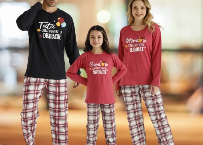 SET PIJAMA TATA-MAMA-FIICA, IMPRIMEU DIS...