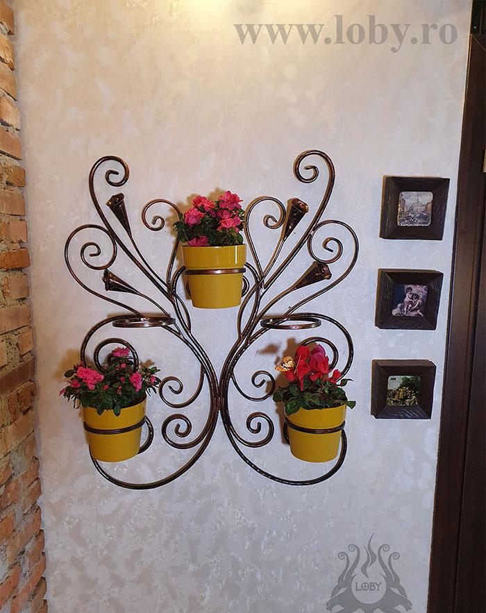 Pentru ca nu mai este un simplu suport de flori ci mai repede un ornament in sine am decis sa se incadreze la categoria decoratiunilor. Cu posibilitatea de a sustine cinci flori de dimensiuni medii poate fi configurat in diverse moduri in functie de florile alese. Pretabil atat la interior cat si la exterior poate deveni un decor deosebit.