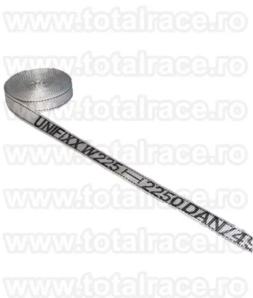 Total Race comercializeaza din stoc banda de ambalare/ancorare ce asigura transportul in siguranta a tuturor produselor/marfurilor (transport maritim,transport rutier,transport feroviar,transport agabaritic,transport special), legarea solarelor, tamplarie PVC, agricultura, industria lemnului, slacklining. Este o banda ideala pentru ambalarea/ancorarea tevilor,otelului inoxidabil. Banda din poliester are capacitati de la 2250 daN pana la 7500 daN,latimi de banda intre 25mm–50 mm, nu ruginesc,sunt flexibile,nu deterioreaza incarcatura. Benzile sunt sisteme de fixare usoare,au o greutate scazuta,sunt extrem de durabile si impreuna cu cataramele/clemele si clichetii de strangere sunt solutia perfecta pentru ambalare/ancorare/legare: rapida, economica si sigura!