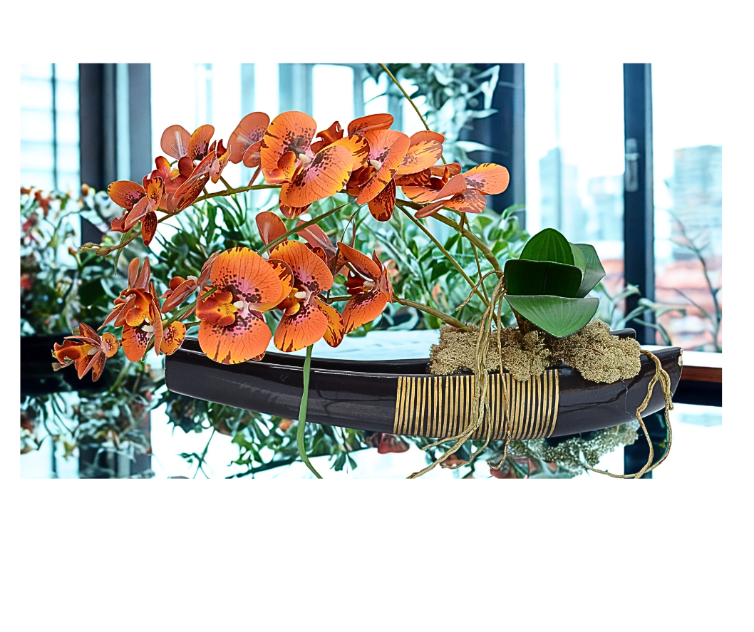 Un aranjament floral unic cu orhidee artificiala și mușchi natural poate fi o piesă de decor spectaculoasă. Acest tip de aranjament combină eleganța rafinată a orhideelor cu textura și verdeața vibrantă a mușchiului natural, creând un contrast plăcut și o atmosferă deosebită.