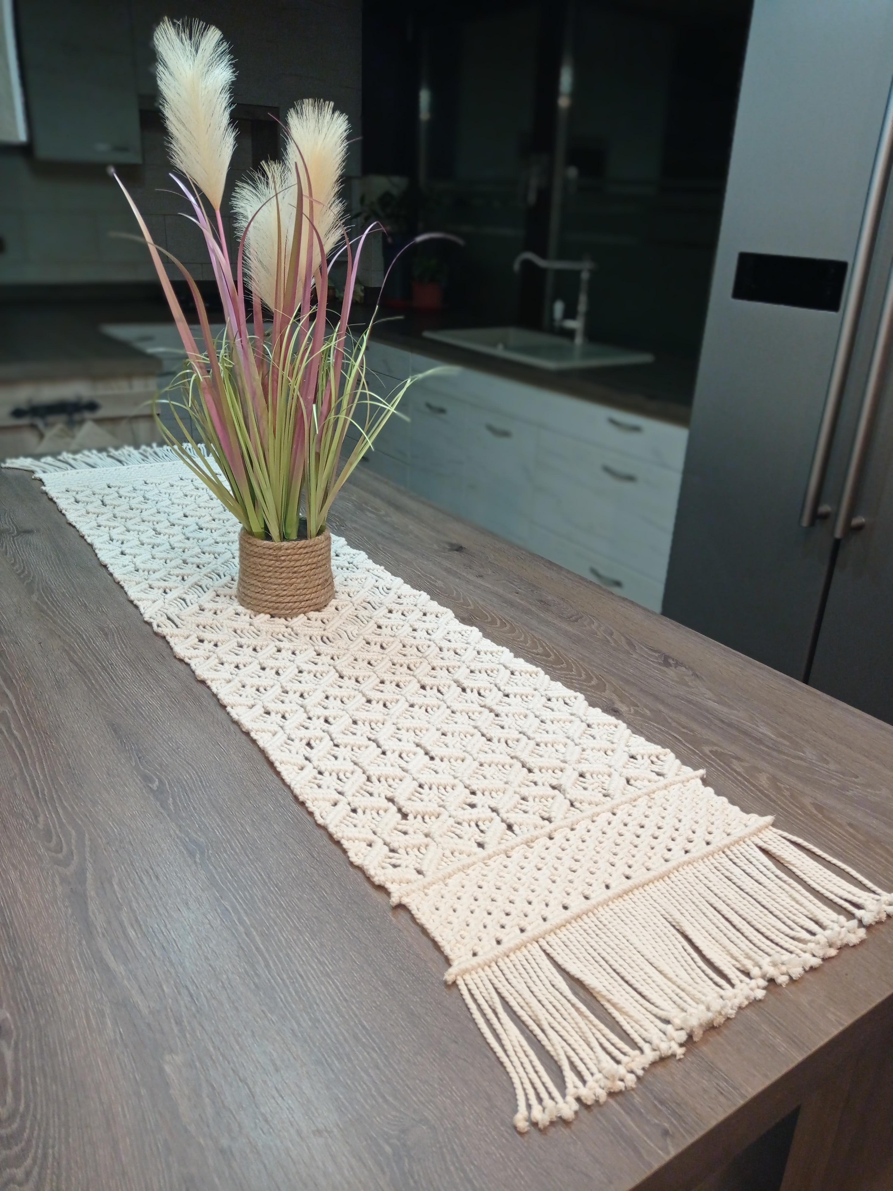 Faţă de masă din fir de 3 mm de bumbac reciclat, culoare natur. Mărime: 165cm / 35 cm