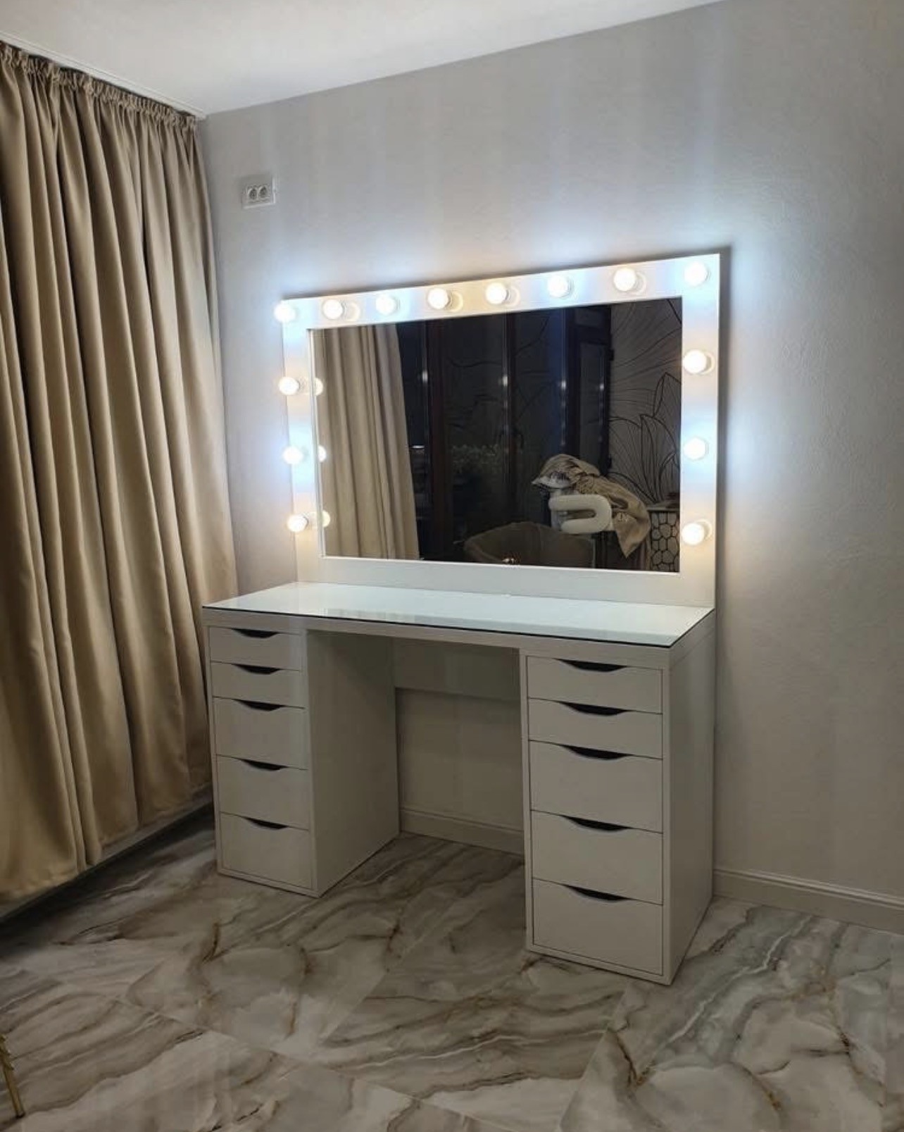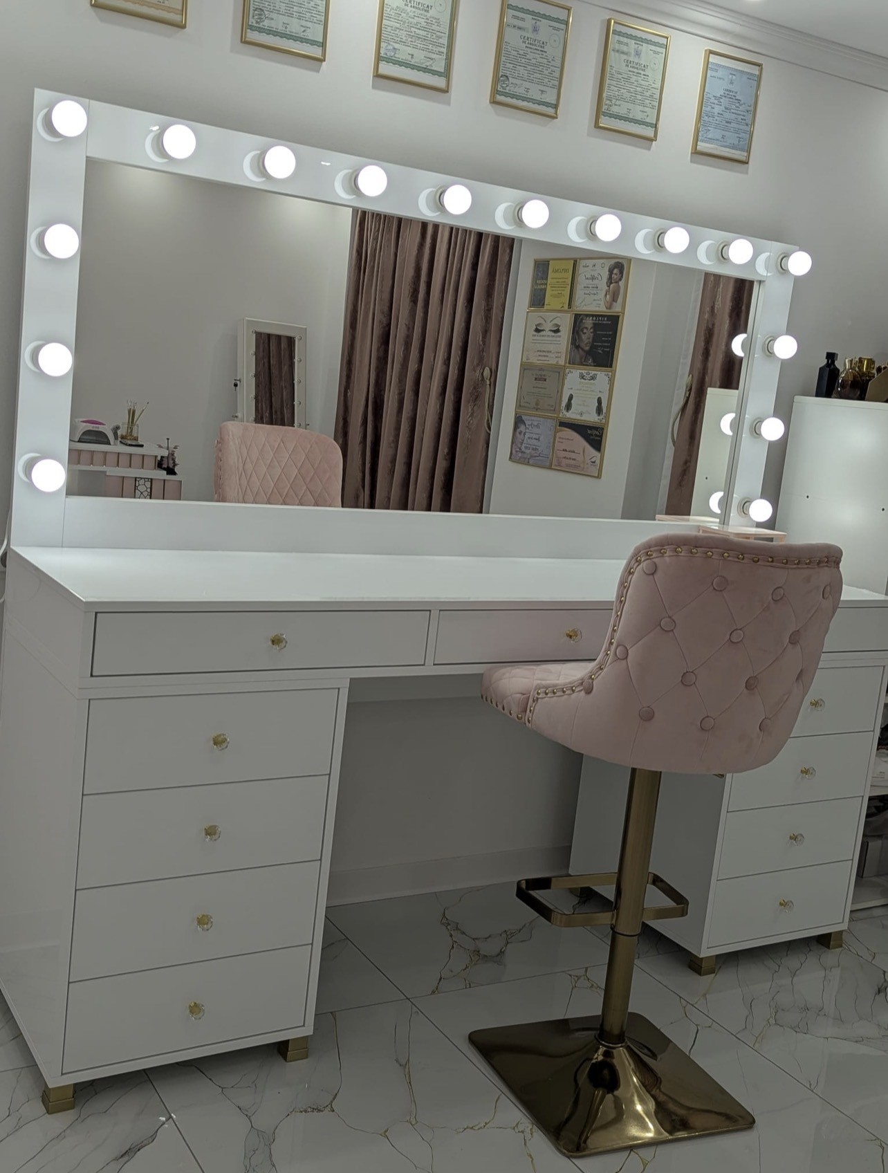 Mese de machiaj profesionale, realizate pe comandă , potrivite atât pentru acasă, cât și pentru salon . Totul este personalizabil: dimensiuni, material , culori etc ,  astfel încât să ți se potrivească perfect!