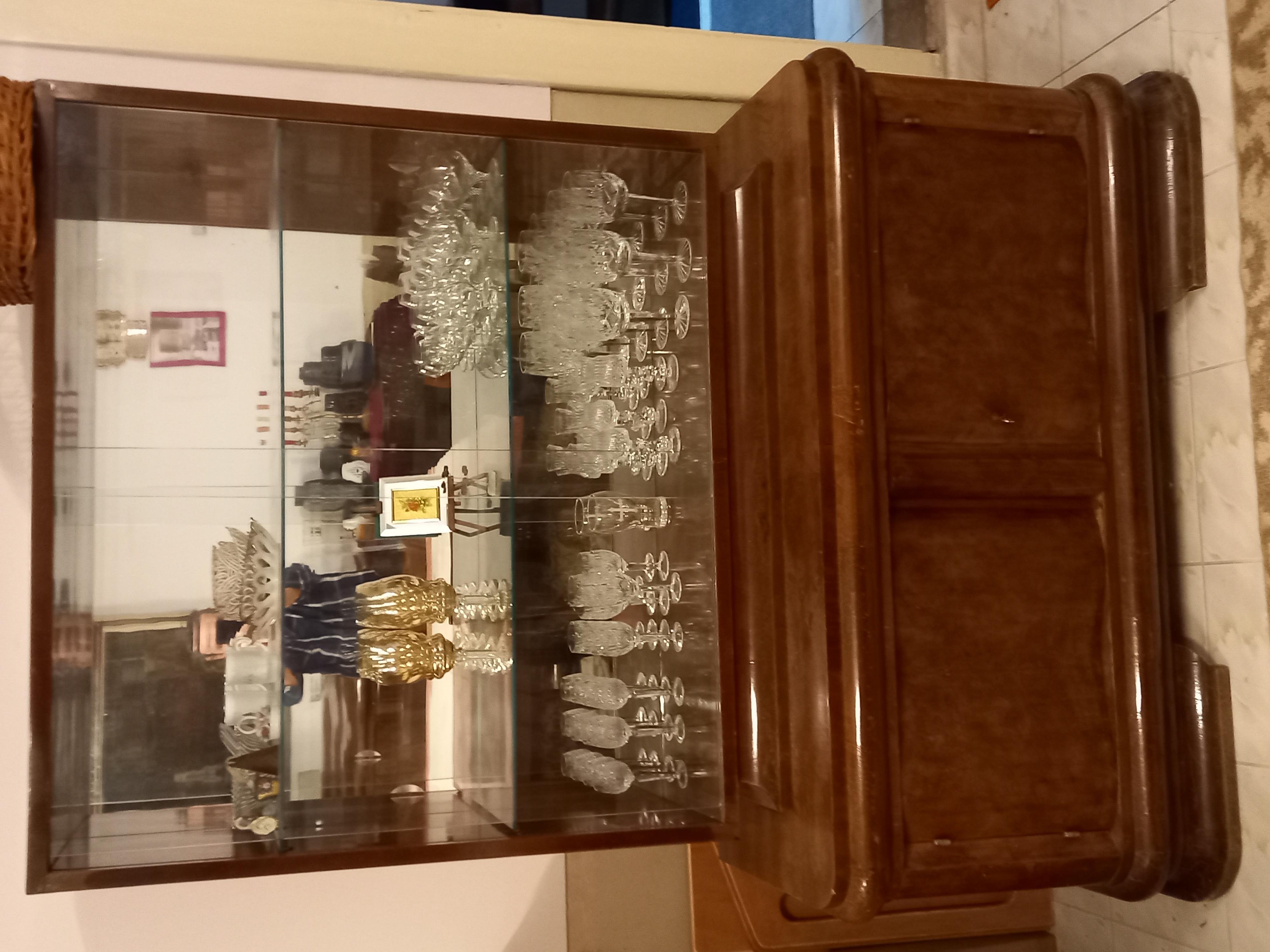 Vand mobila de sufragerie veche - anii 50. Consta in: 1. MASA de 120X100 extensibila pe lungime cu 100 cu 6 scaune; 2. BUFET inalt 100, lat 203 si adanc 62; 3. VITRINA cu baza: inalt 66, lat 132, adanc 52 si sus, cu sticla inalt 67, lat 110, adanc 32