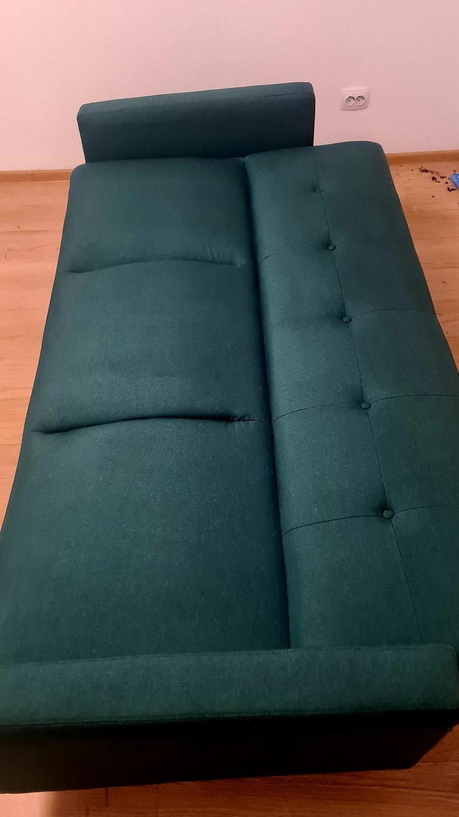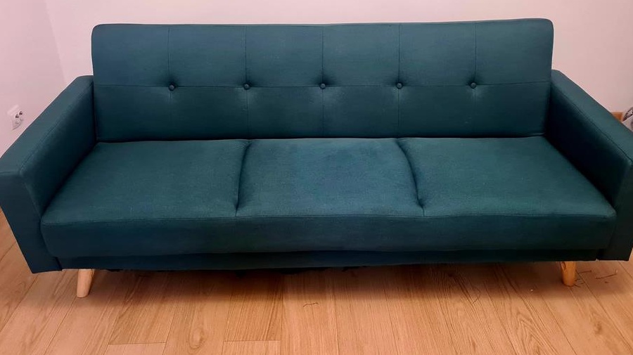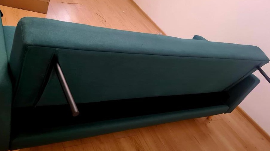 Canapea extensibila Cristina - verde smarald. canapea: Lungime=210 cm/ Lățime=87 cm/ Înălțime =88 cm/ Înălțime șezut=45 cm/ Adâncime șezut=60 cm/ Înălțime spătar= 48 cm extensie (suprafața efectivă de dormit): Lungime=190 cm/ Lățime=111 cmA fost folosita doar 1 an. Sub canapea are si o lada de depundere a asternuturilor. Se poate vedea in imagine ca este pe jumatate deschisa. Transportul NU este inclus. Pentru alte detalii, mesaj pe whatsup sau telefon.