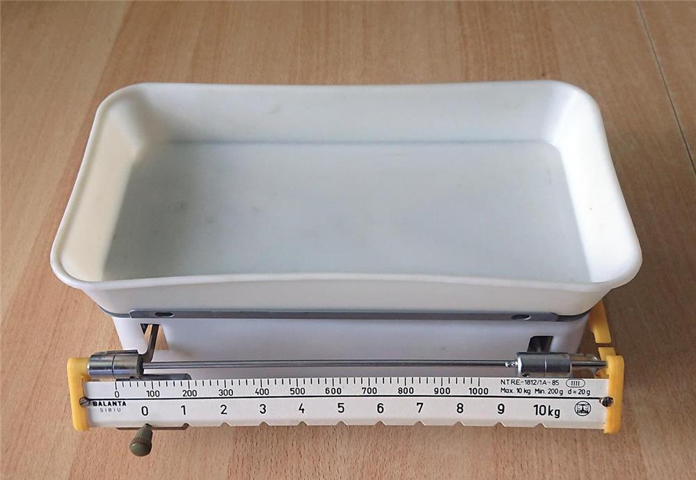 Vand cantar mecanic de bucatarie Sibiu (piesa de colectie, ce ar putea ajunge si intr-un muzeu). Cantarul este functional si precis. Este un produs vintage intr-o stare foarte buna. Toate piesele sunt originale. Poate fi colectionat. Poate cantari precis de la 200g pana la 10kg si are o variatie de 20 de grame. Se pot realiza si cantariri pentru mai putin de 200g si se pot estima variatii mai mici de 20g.Este o balanta originala facuta in Romania, la Sibiu, in perioada comunista.Are si tavita din plastic si am ineles ca acest tip de cantare se foloseau si pentru cantarirea nou-nascutilor.Partile metalice prezinta usoare forme de rugina, dar se poate reconditiona foarte bine.Poze reale.Pot sa-l predau personal in Cluj-Napoca sau sa-l trimit oriunde in tara (pretul transportului prin curier nu ar trebui sa depaseasca 10-15 lei). Va rog sa ma contactati inainte de a comanda prin