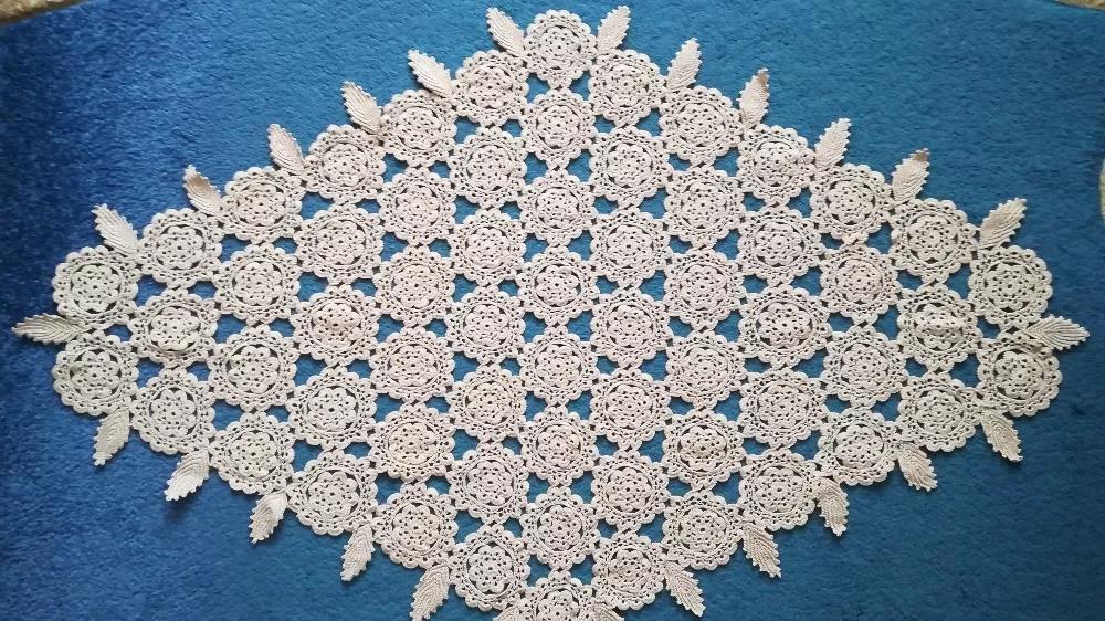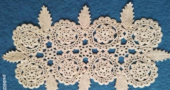 Set macrame nou din 4 piese, lucrat manual, deosebit. Este de culoare crem. Nu a fost folosit niciodată și a fost păstrat în condiții optime. Dimensiuni sunt: - 108/65 mm;- 40/23 mm;- 23/17 mm;- 20/17 mm.
