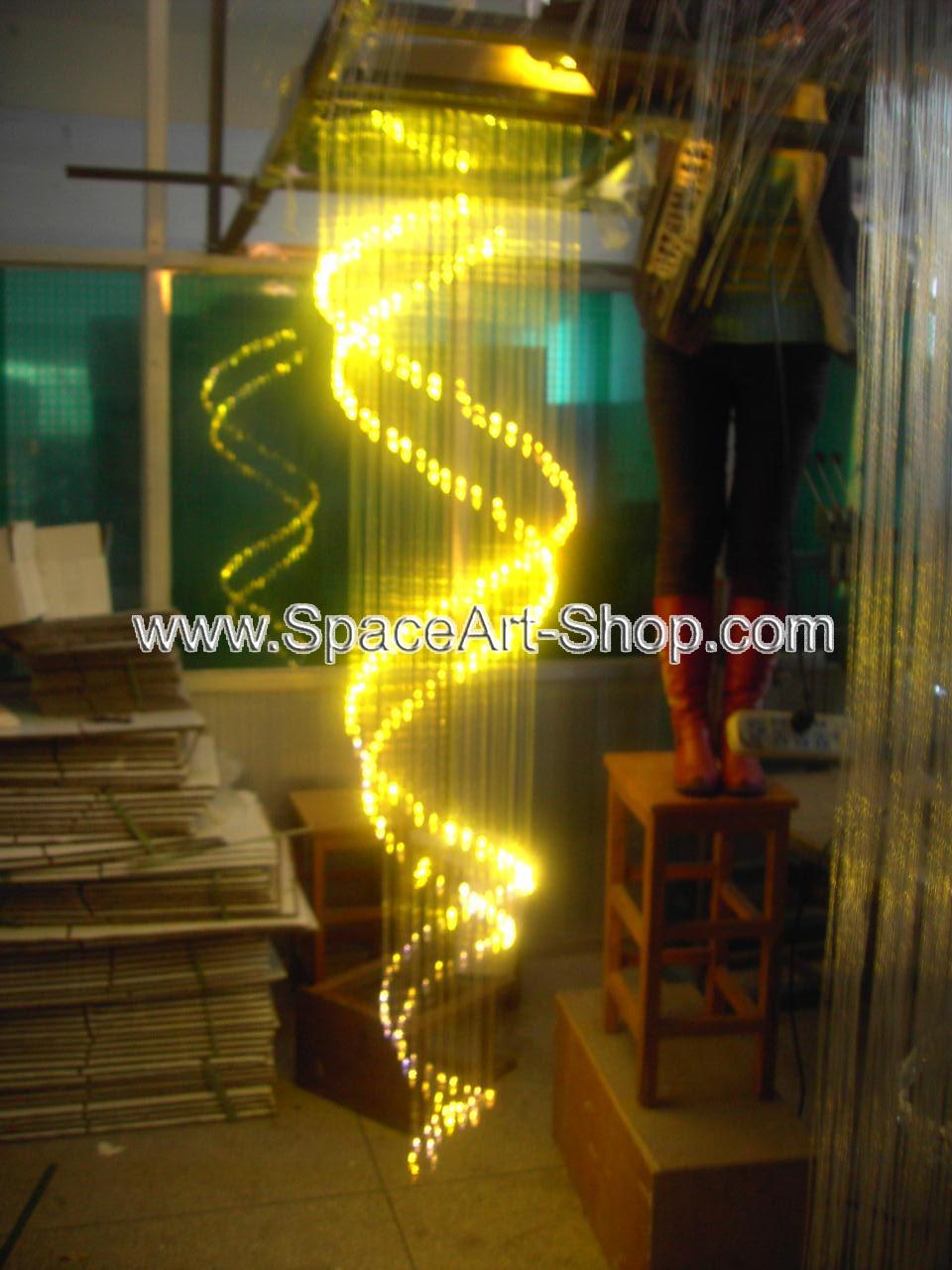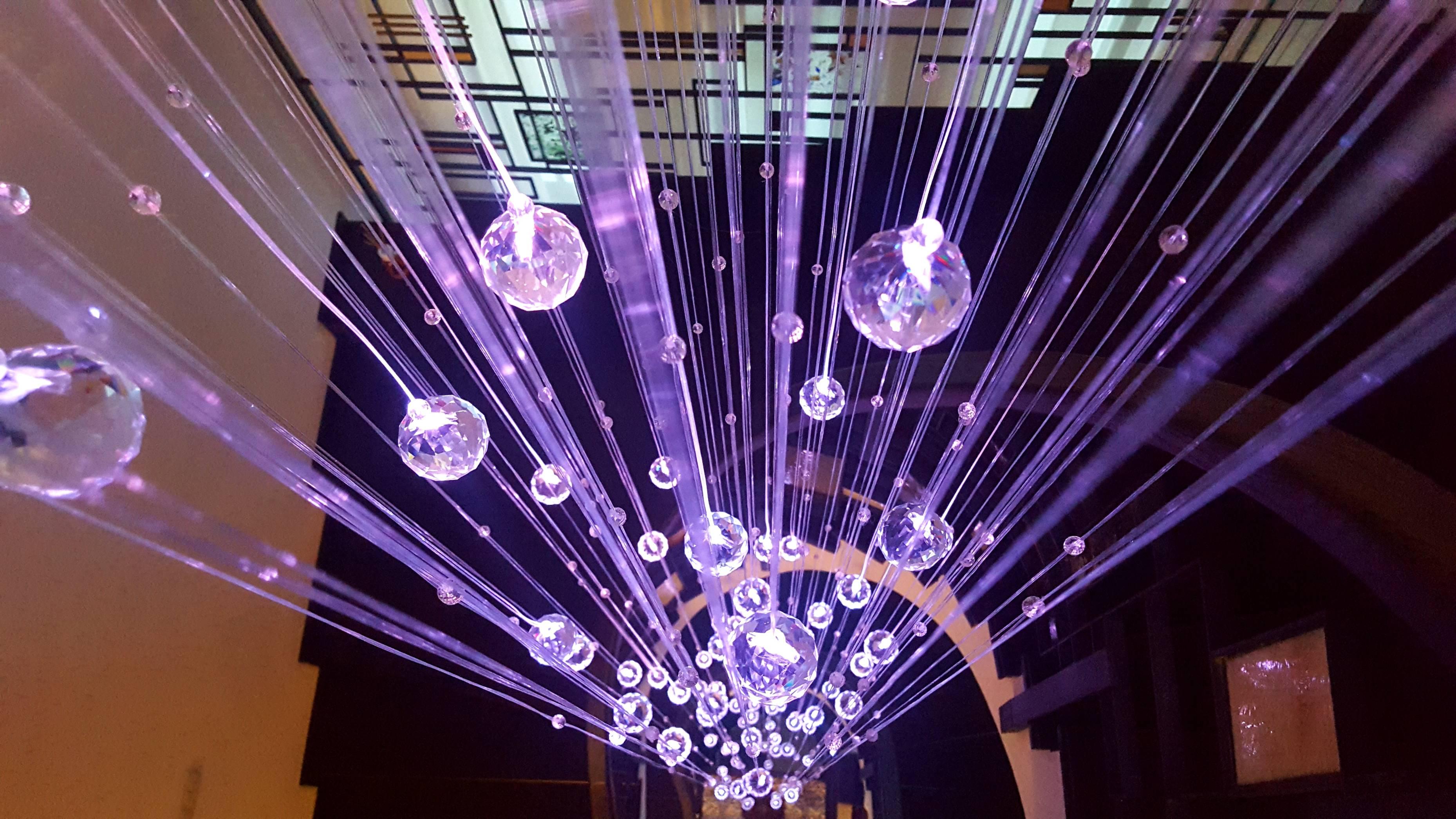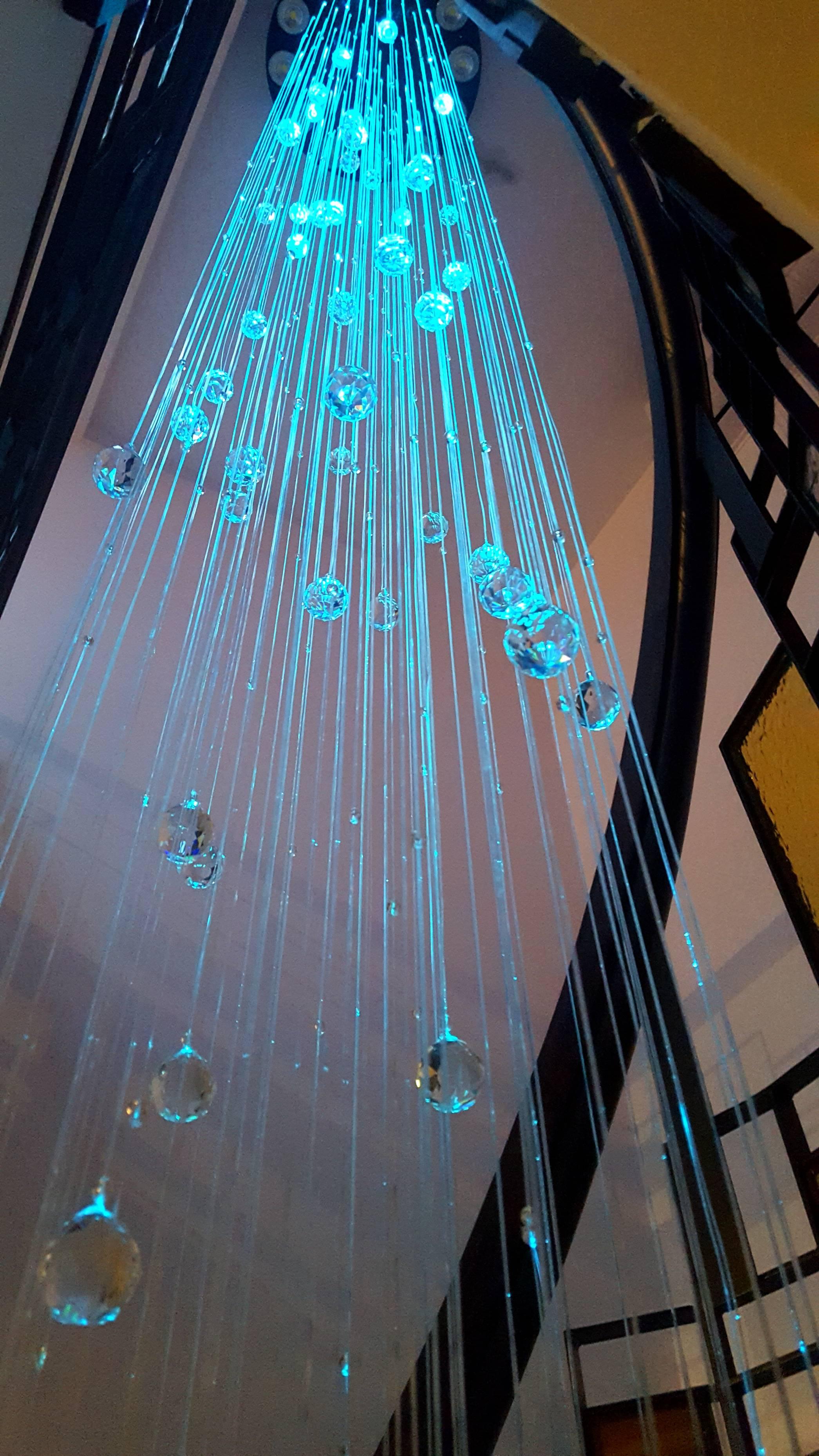 Realizam la comanda candelabre de mari dimesiuni din cristale si fibra optica iluminate led rgb,