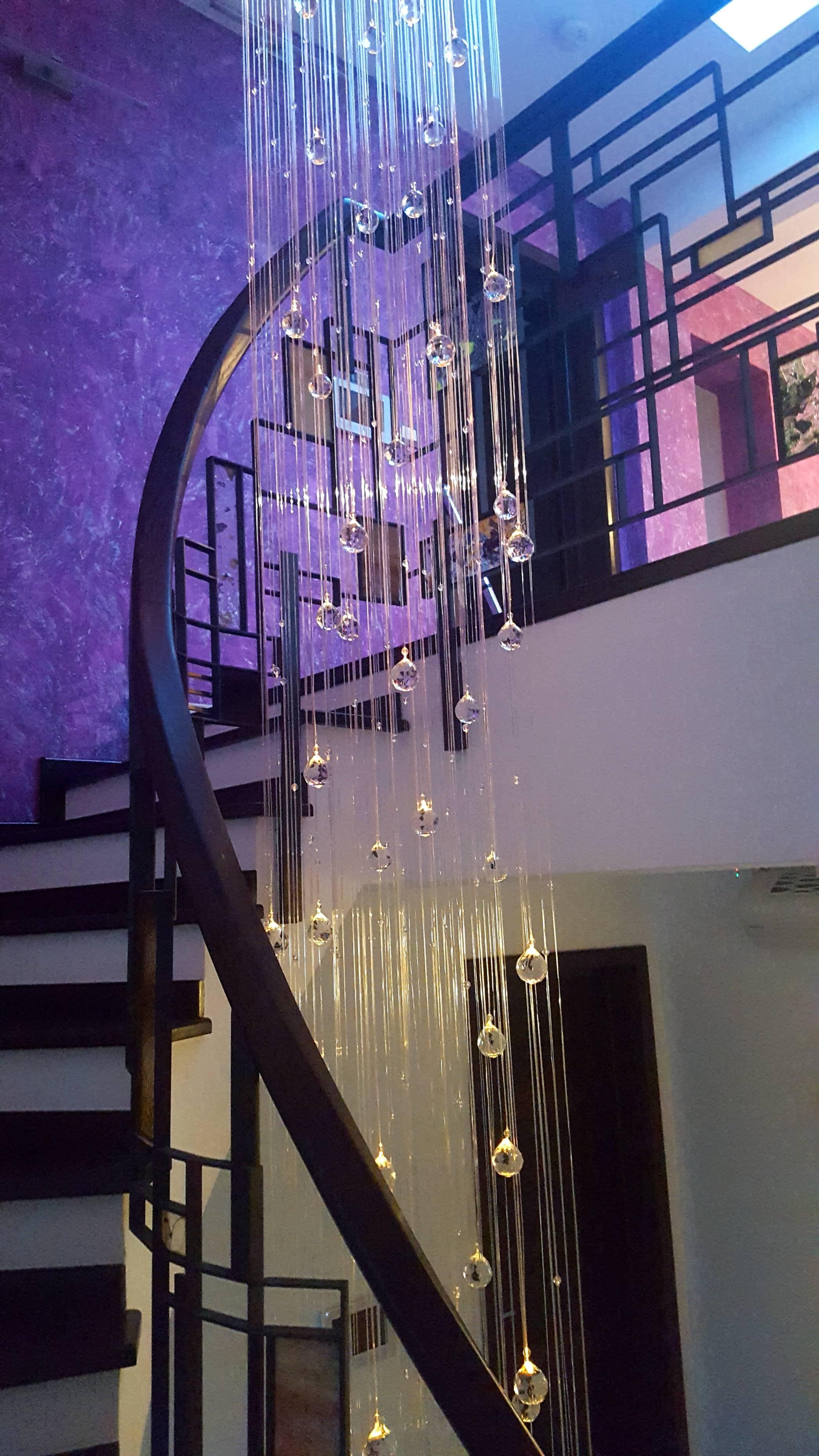 Defineste intr-un mod unic designul amenajarii scarilor interioare cu un candelabru cu fibra optica, cristale veritabile si surse led