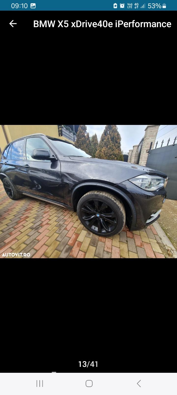 Vand bmw x5 hibrid plug in an 2015 luna 10 , 240 000 km,full optional,245 cai,benzina in stare impecabila de functionare,pentru mai multe detalii tel 0750850609 pret 20499 euro