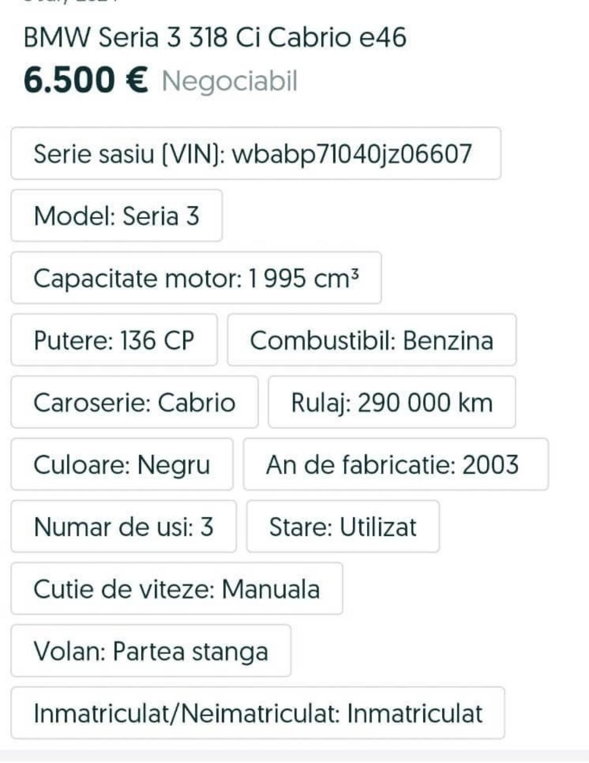 E46 Cabrio Interior Alcantara intact si original fara rupturi