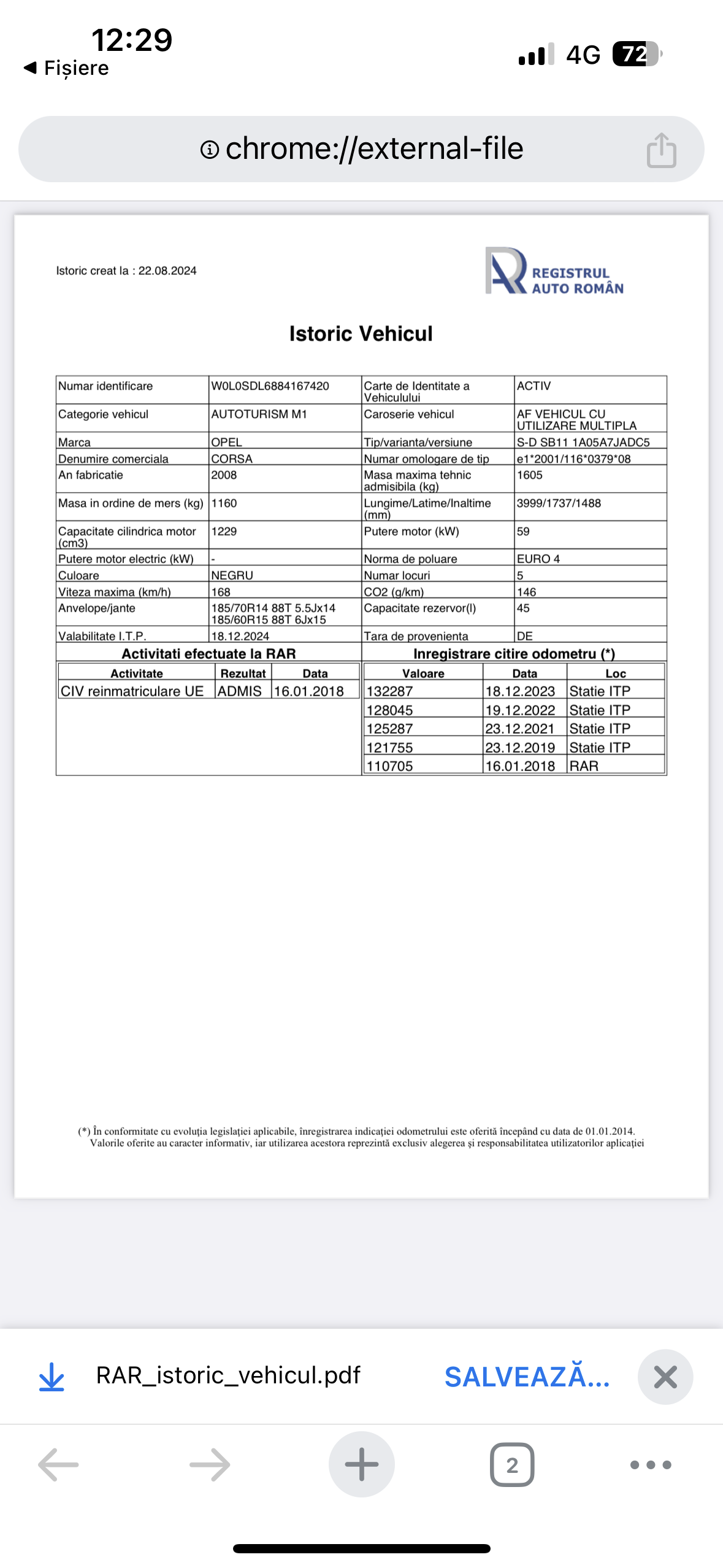 ❗OFER SERIE SASIU PT VERIFICAREA RAROM❗km 134000( raport RAROM in ultima poza)