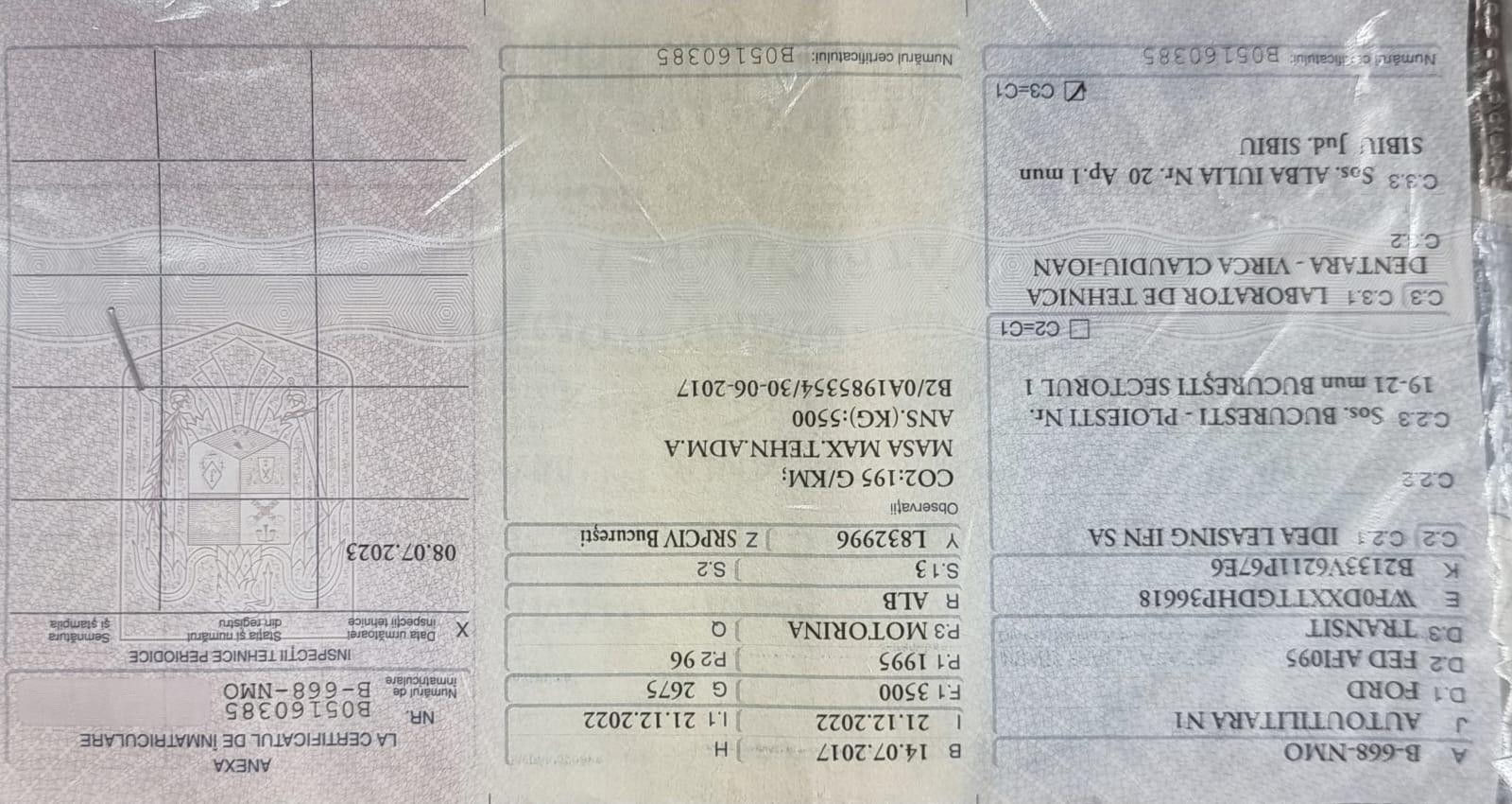 Data primei inmatriculari -14 iulie 2017