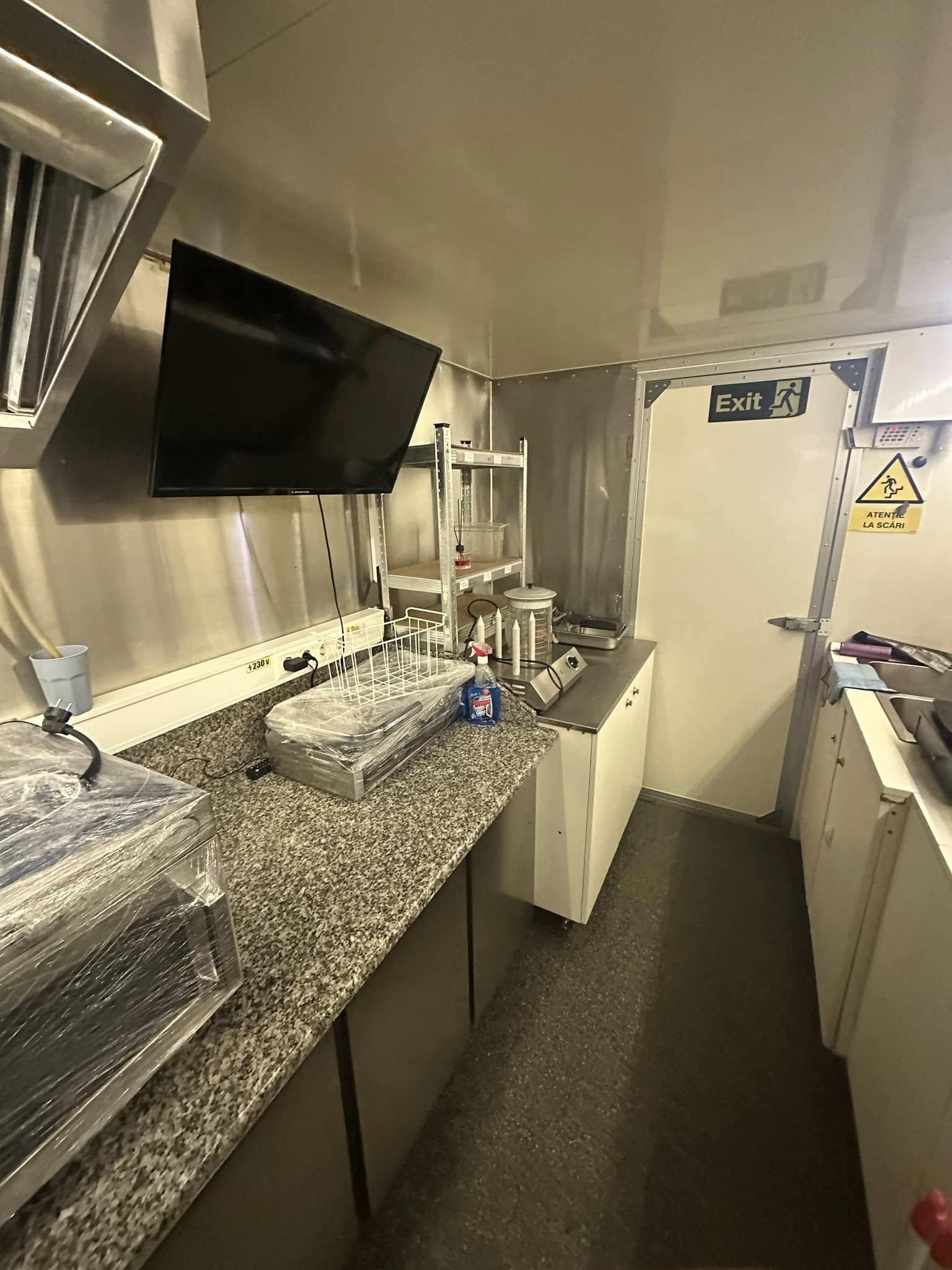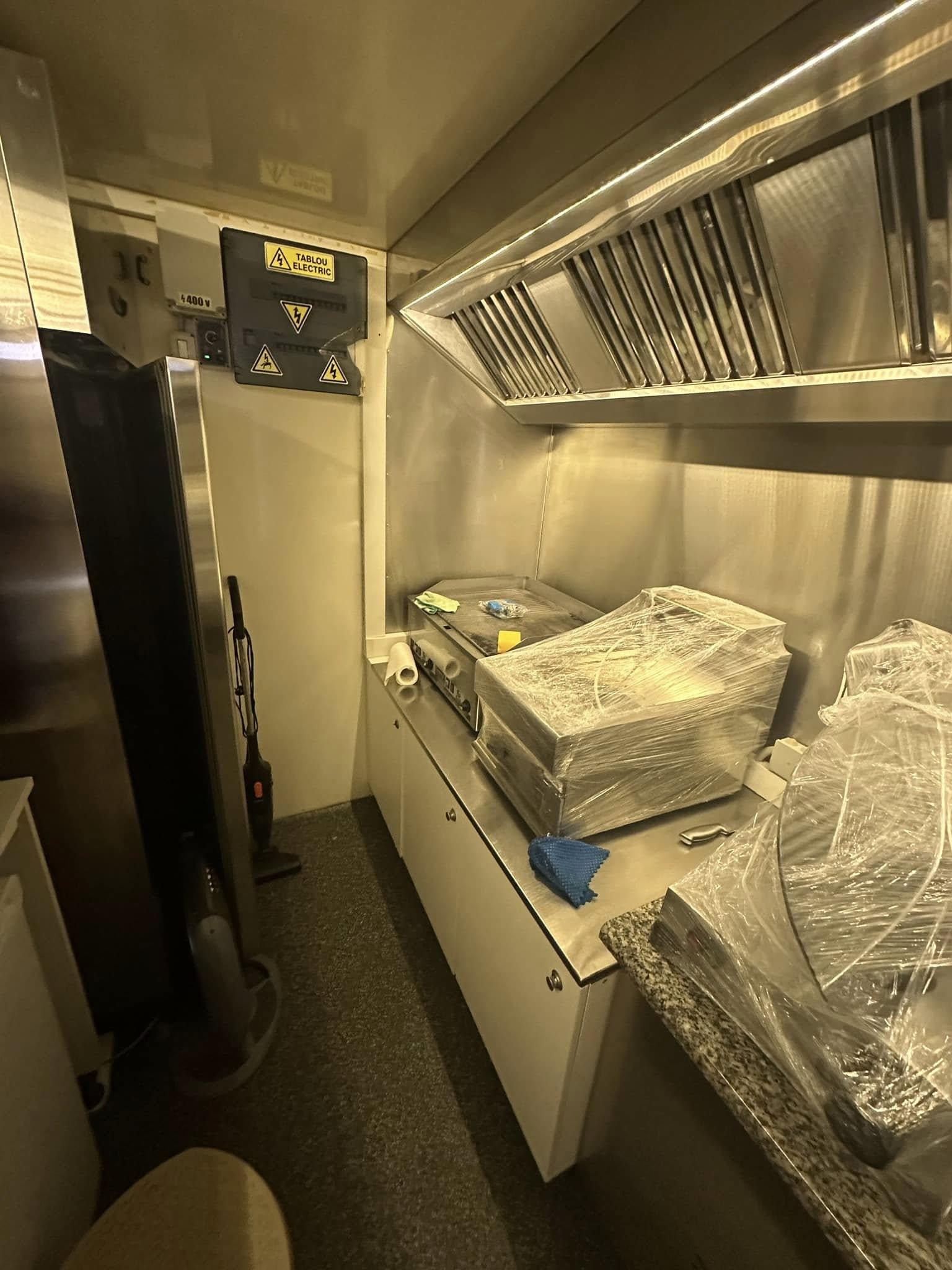 Se vinde rulotă comercială complet echipată, ideală pentru activități de street food sau catering. Rulota este fabricată în 2020, are dimensiunile 4,5 m lungime și 2,5 m lățime, cu pereți placați cu inox pentru igienă și durabilitate. Este dotată cu toate echipamentele necesare pentru operarea eficientă și profesională: