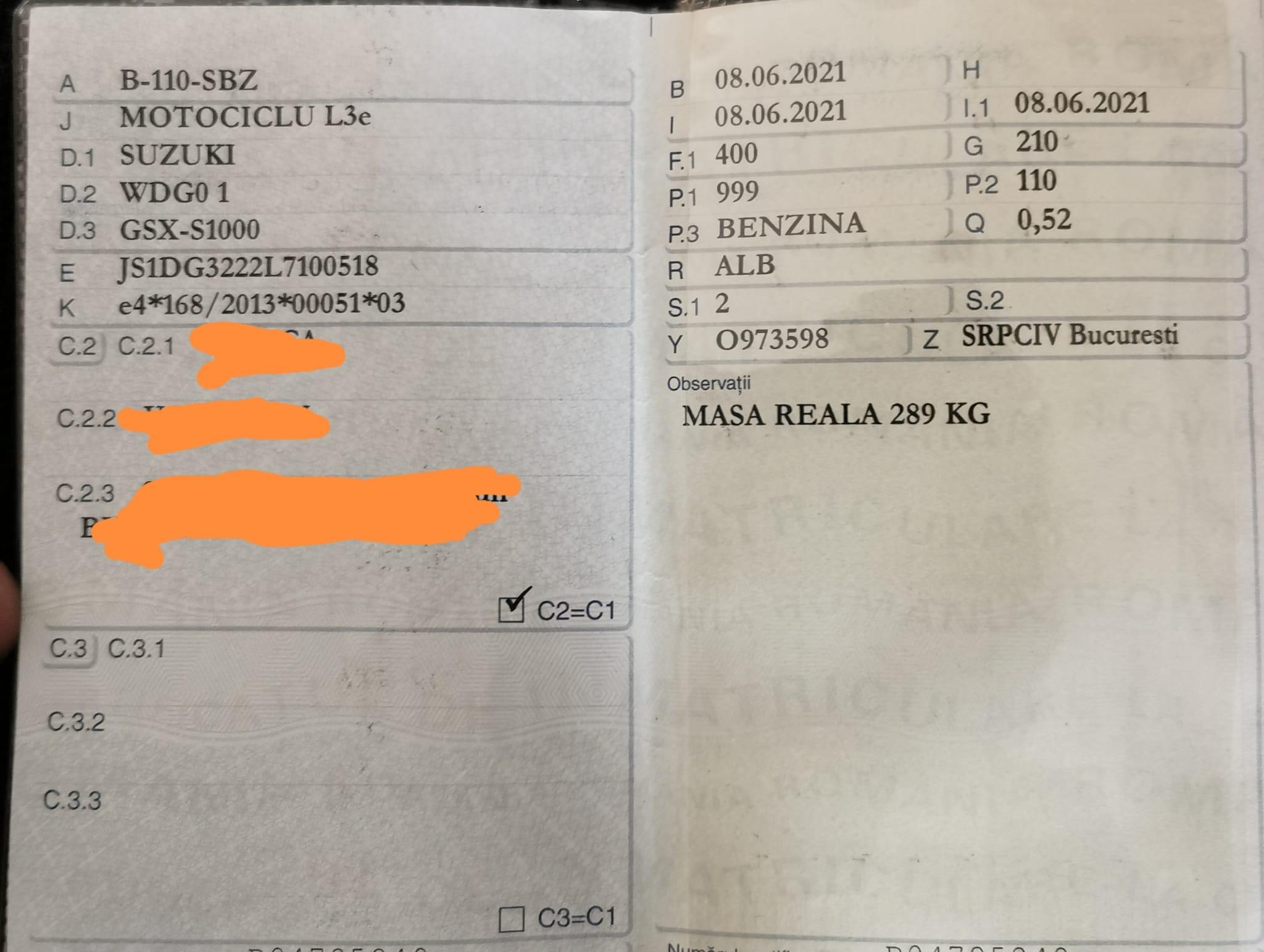 Vand o motocicleta Suzuki GSX-S1000 cu 14.793 kilometri,fara cazaturi.