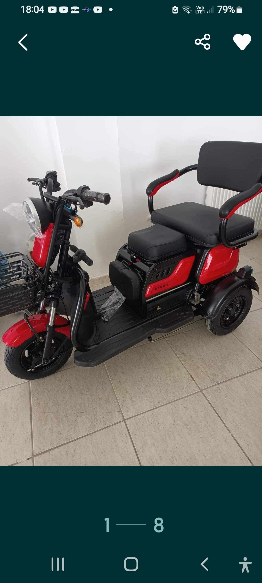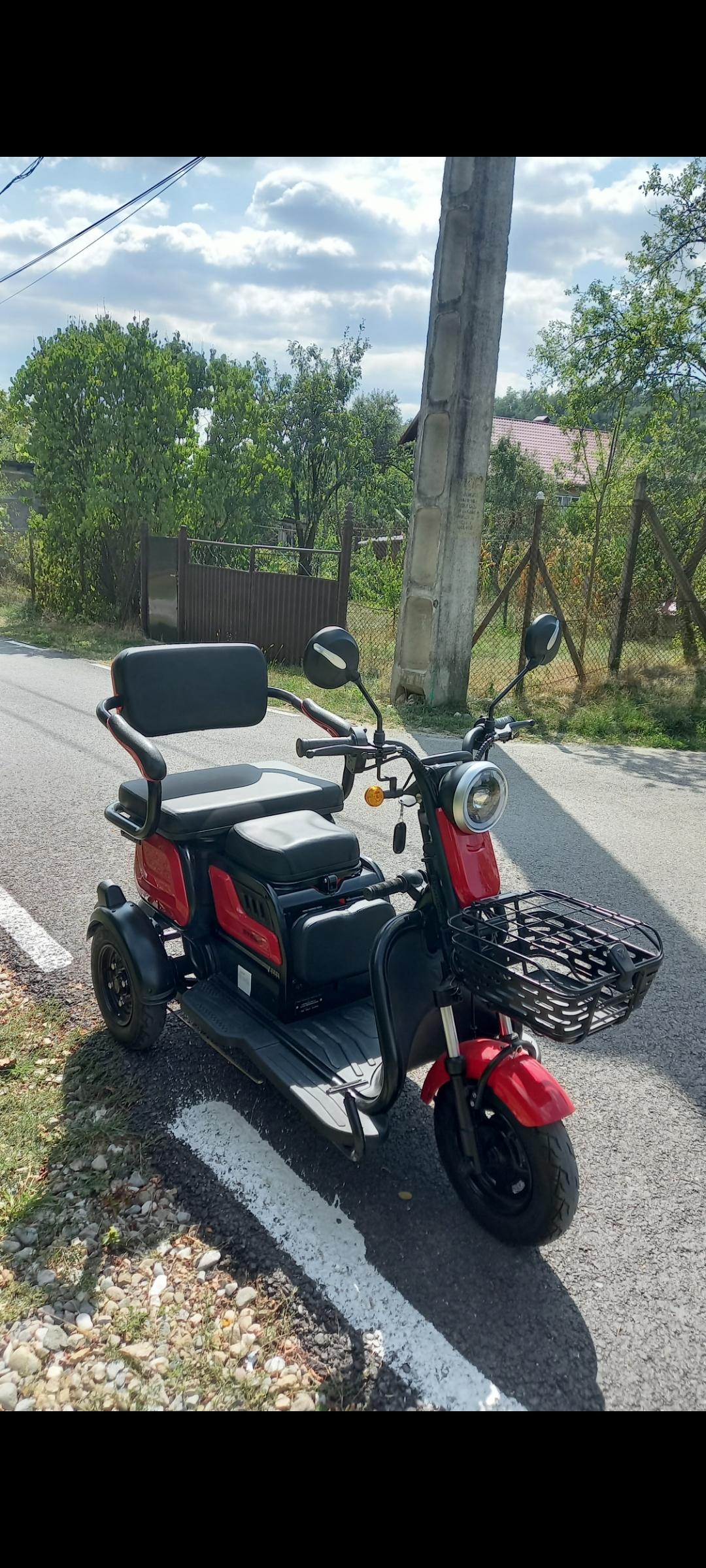 Tricicleta are 5 acumulatori 12v si 20Am , 3 locuri autonomie 50km functioneazà foarte bine, are toate actele este ìn garantie.