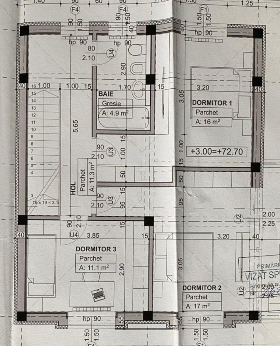 - 3 dormitoare spațioase și luminoase,