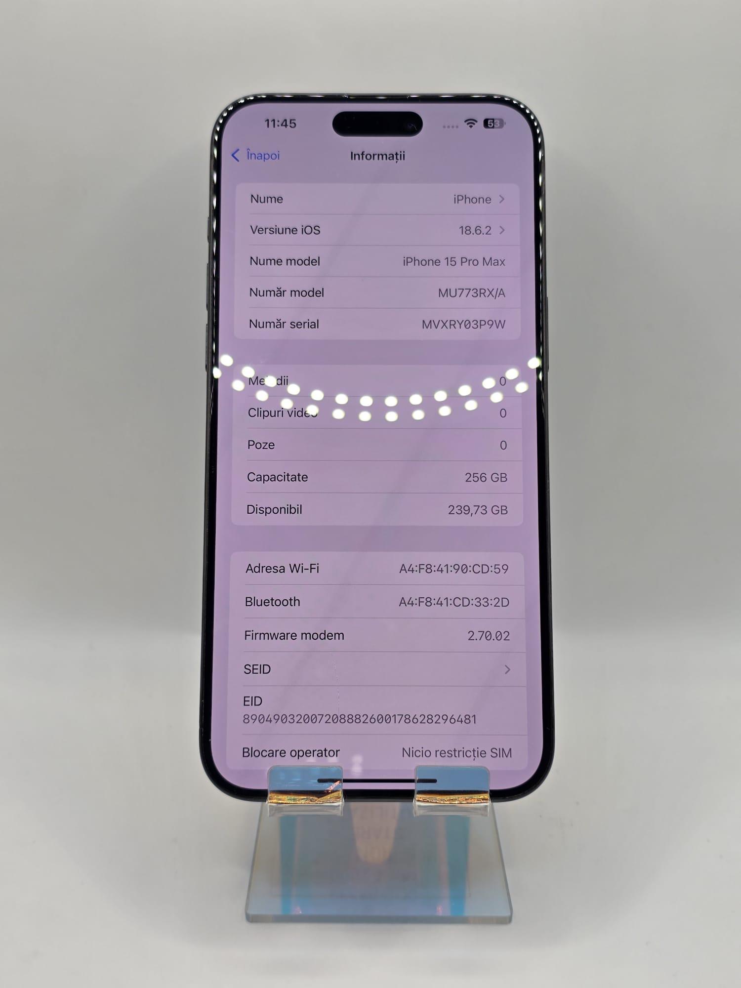 Iphone 15 Pro Max, MEM 256GB, RAM 8GB, Black Titanium, Amanet Doamna Ghica, Cod: 83538