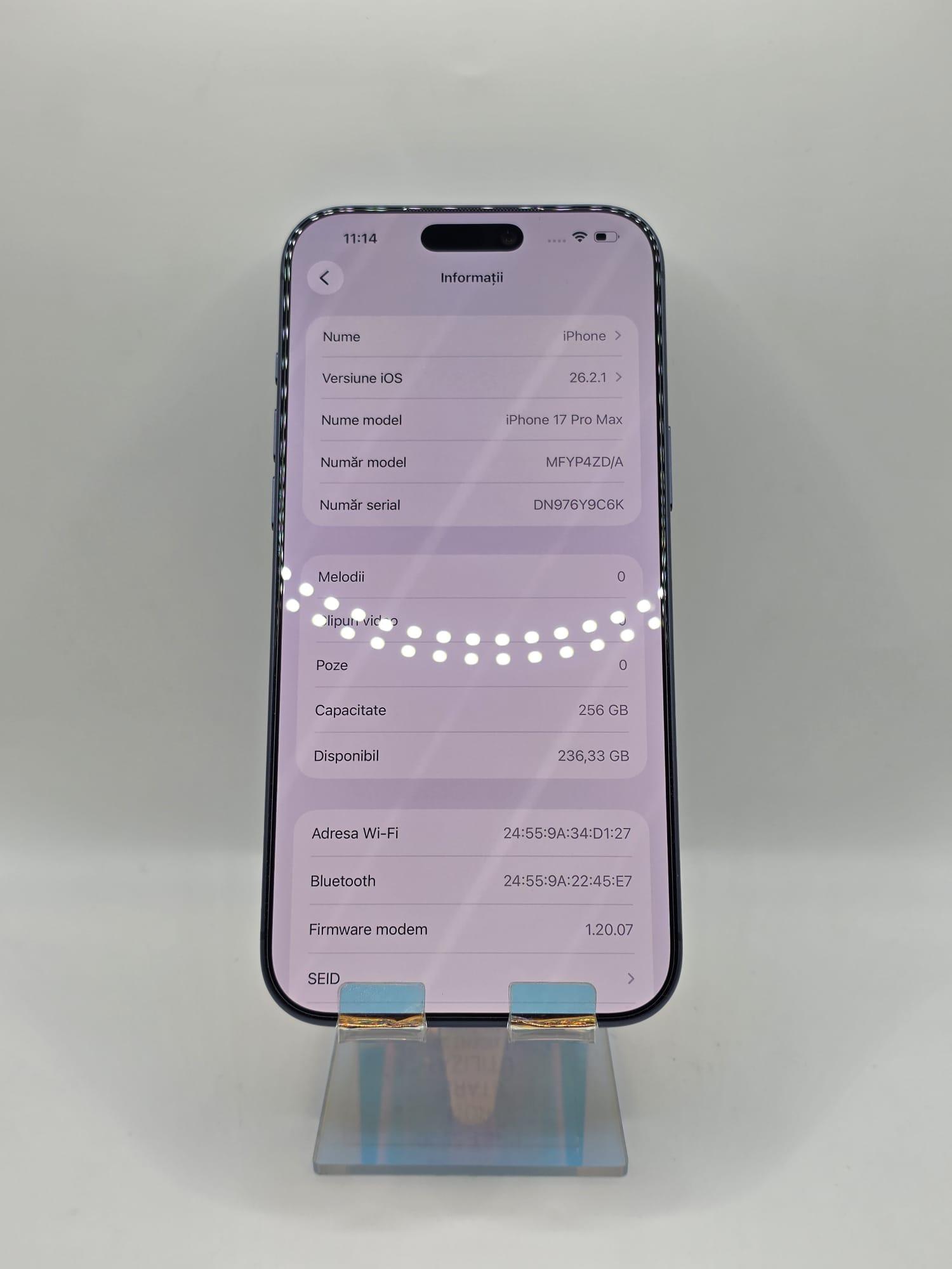 iPhone 17 Pro Max, Mem 256GB, Ram 12GB, Deep Blue, Amanet Doamna Ghica, Cod: 384