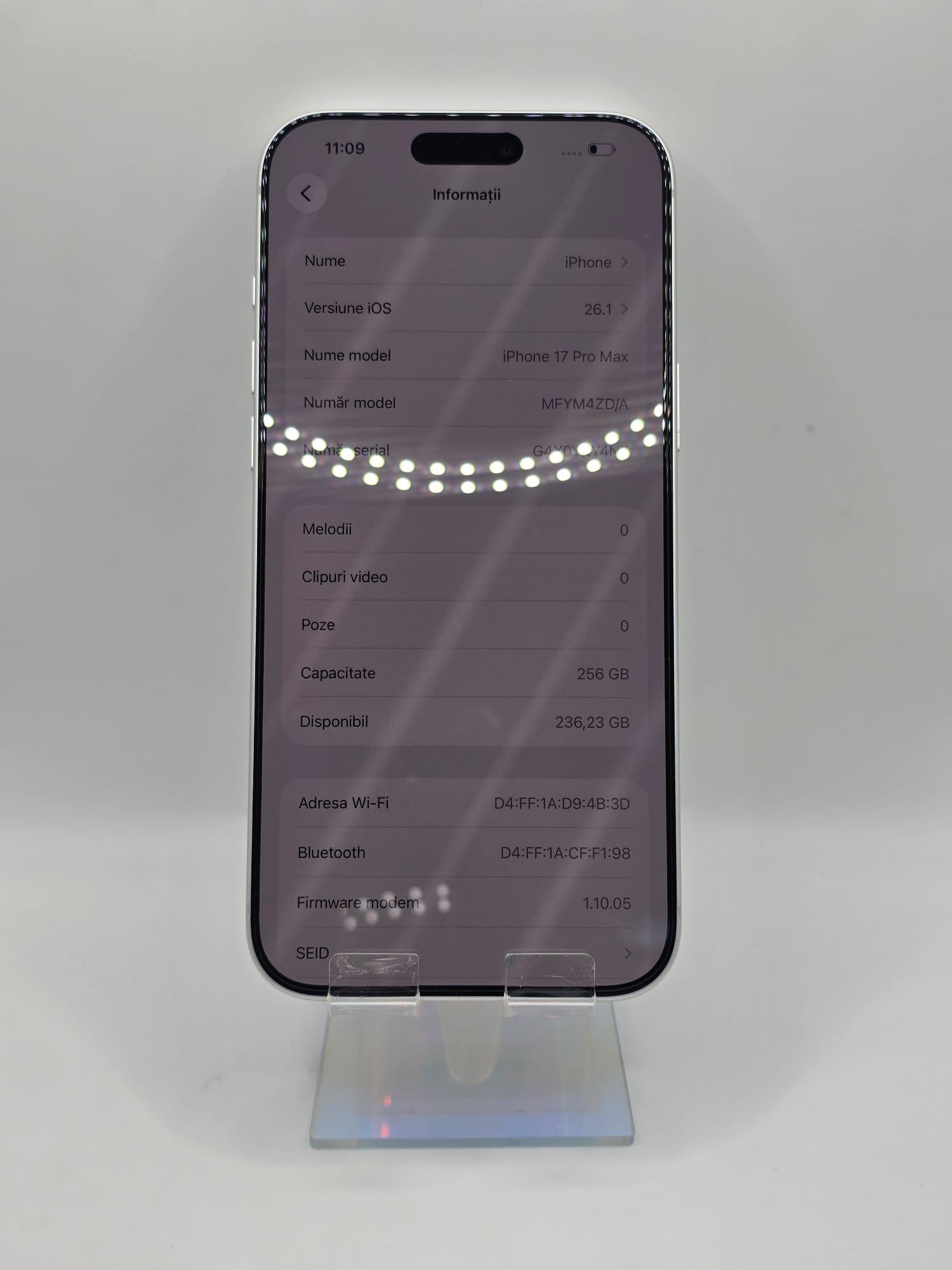 iPhone 17 Pro Max, Mem 256GB, Ram 12GB, White, Amanet Doamna Ghica, Cod: 375