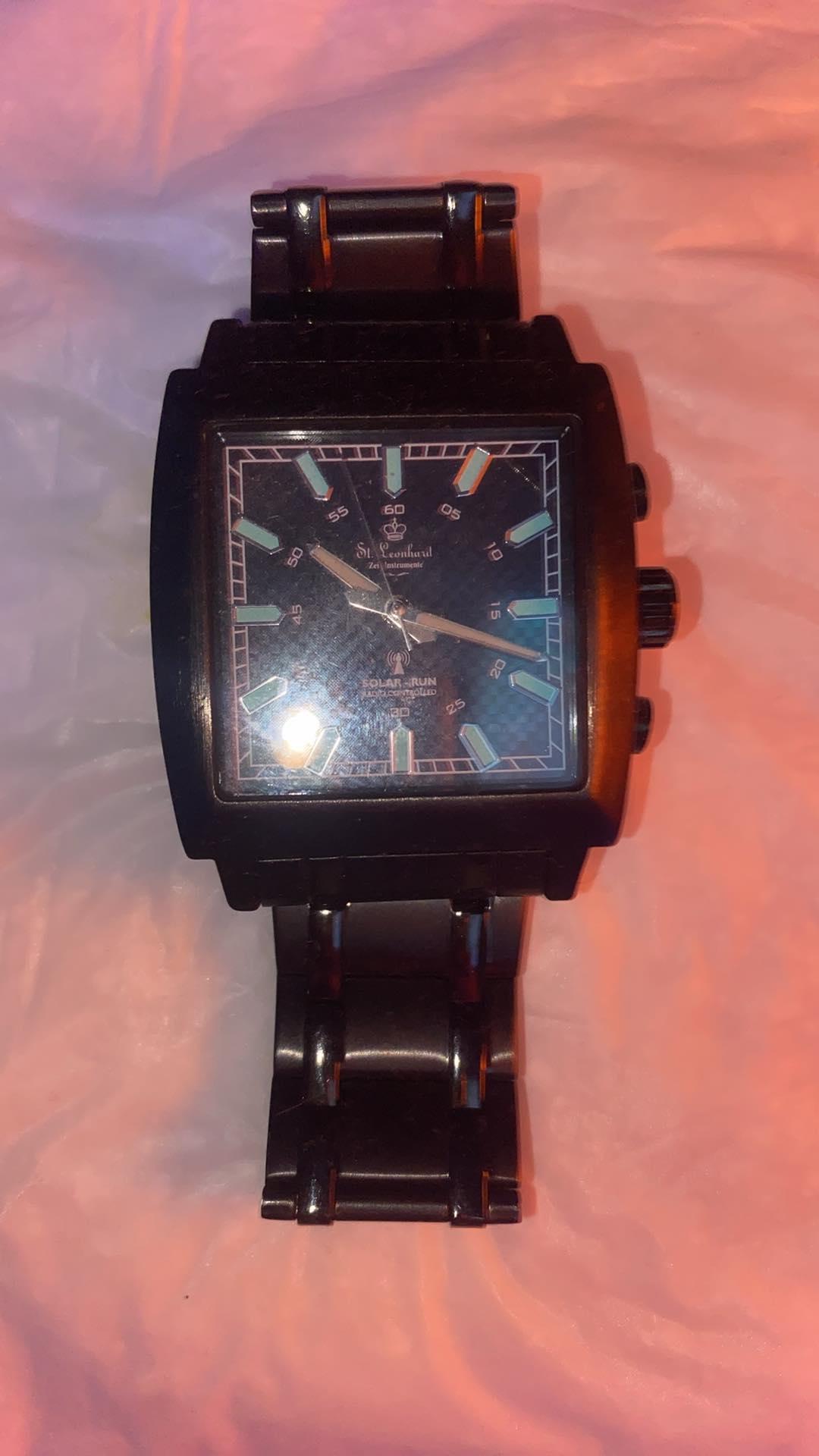 Ceas St.Leonhard barbatesc negru și funcționează pe baterie (quartz) solar power și este genul de ceas care isi schimba ora singur și este ca nou...