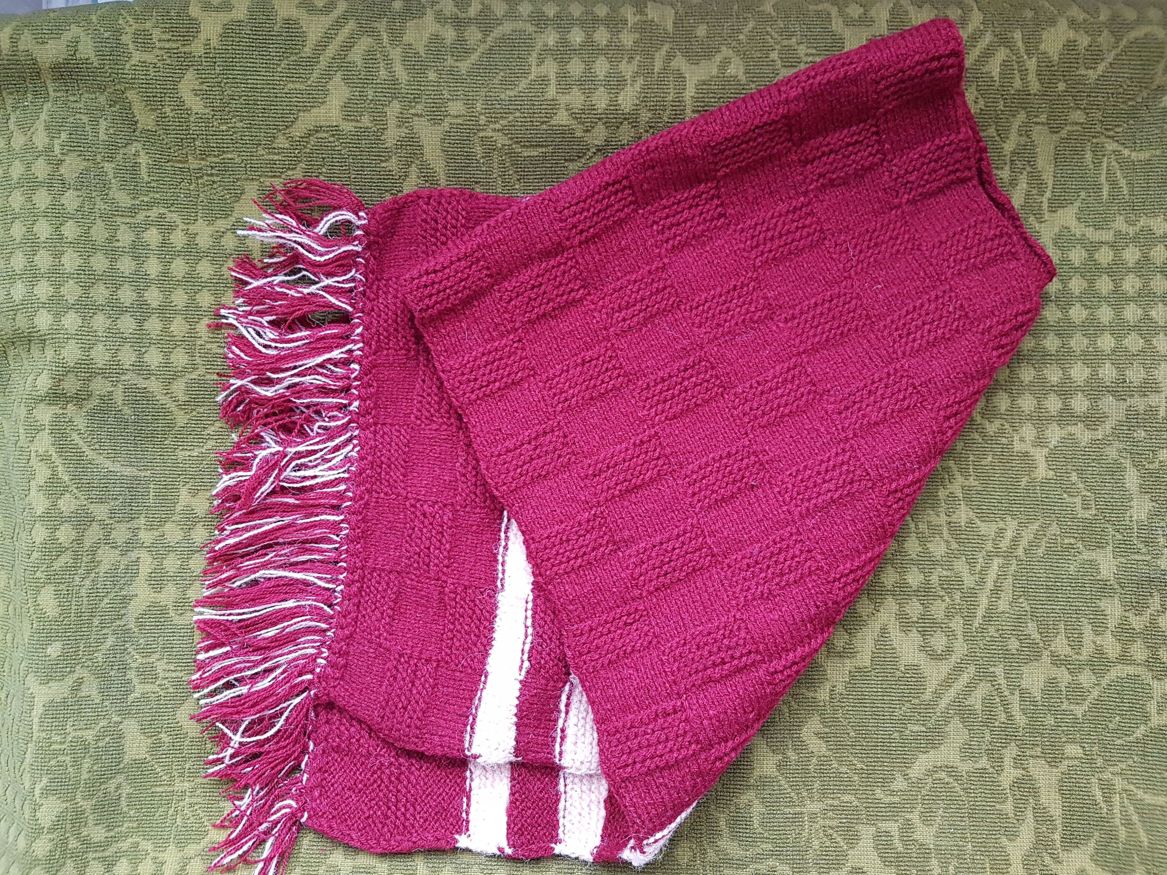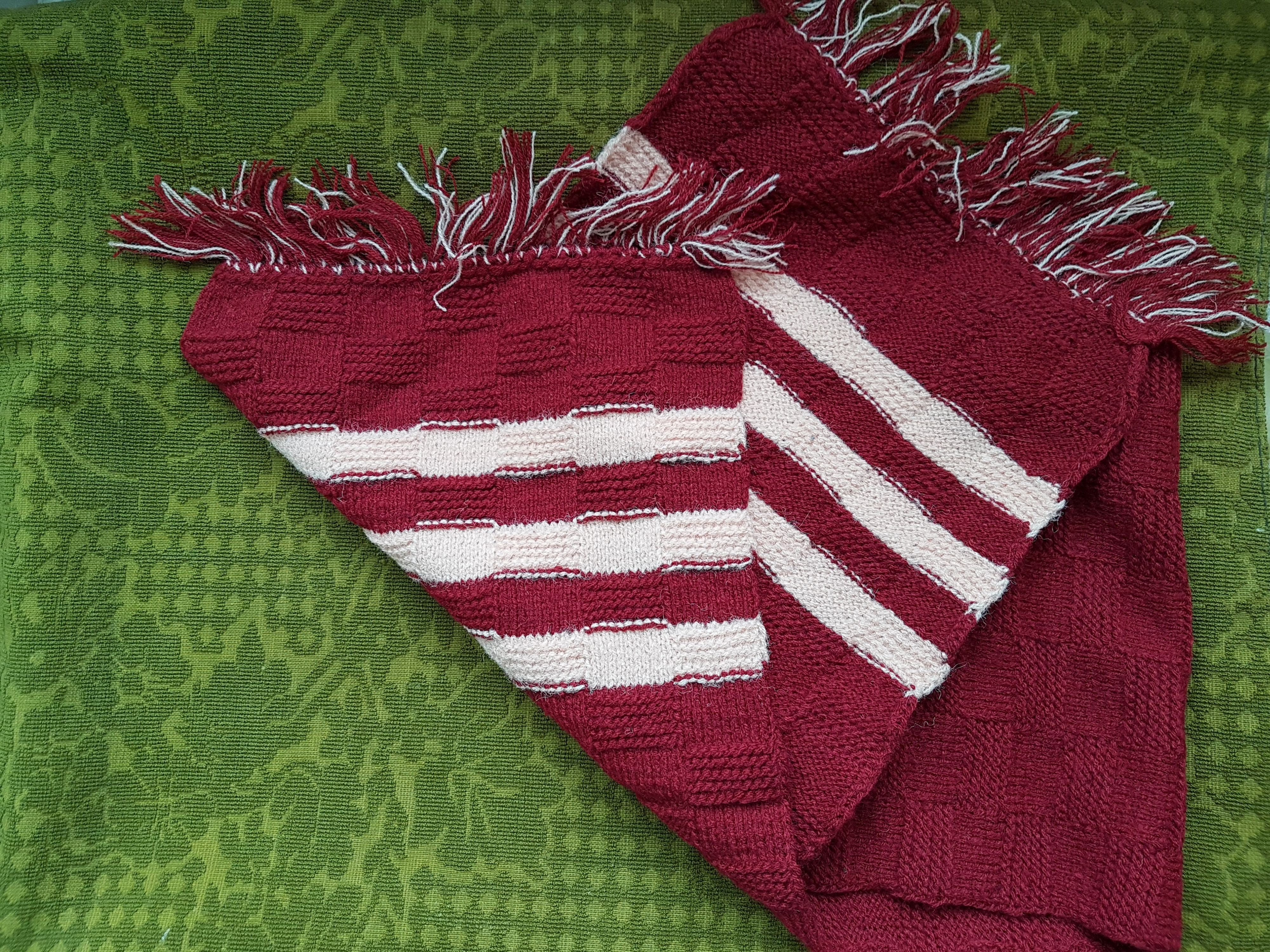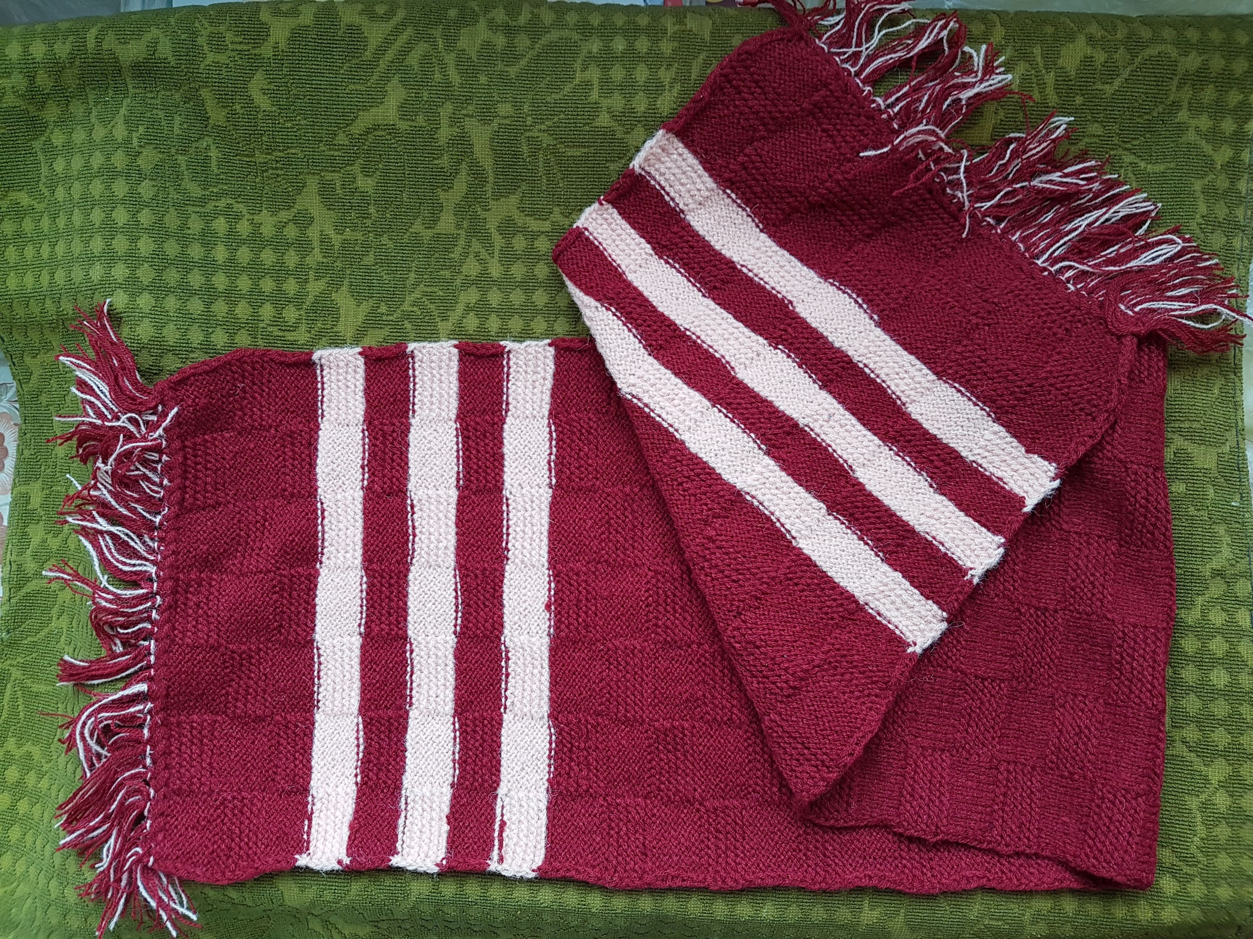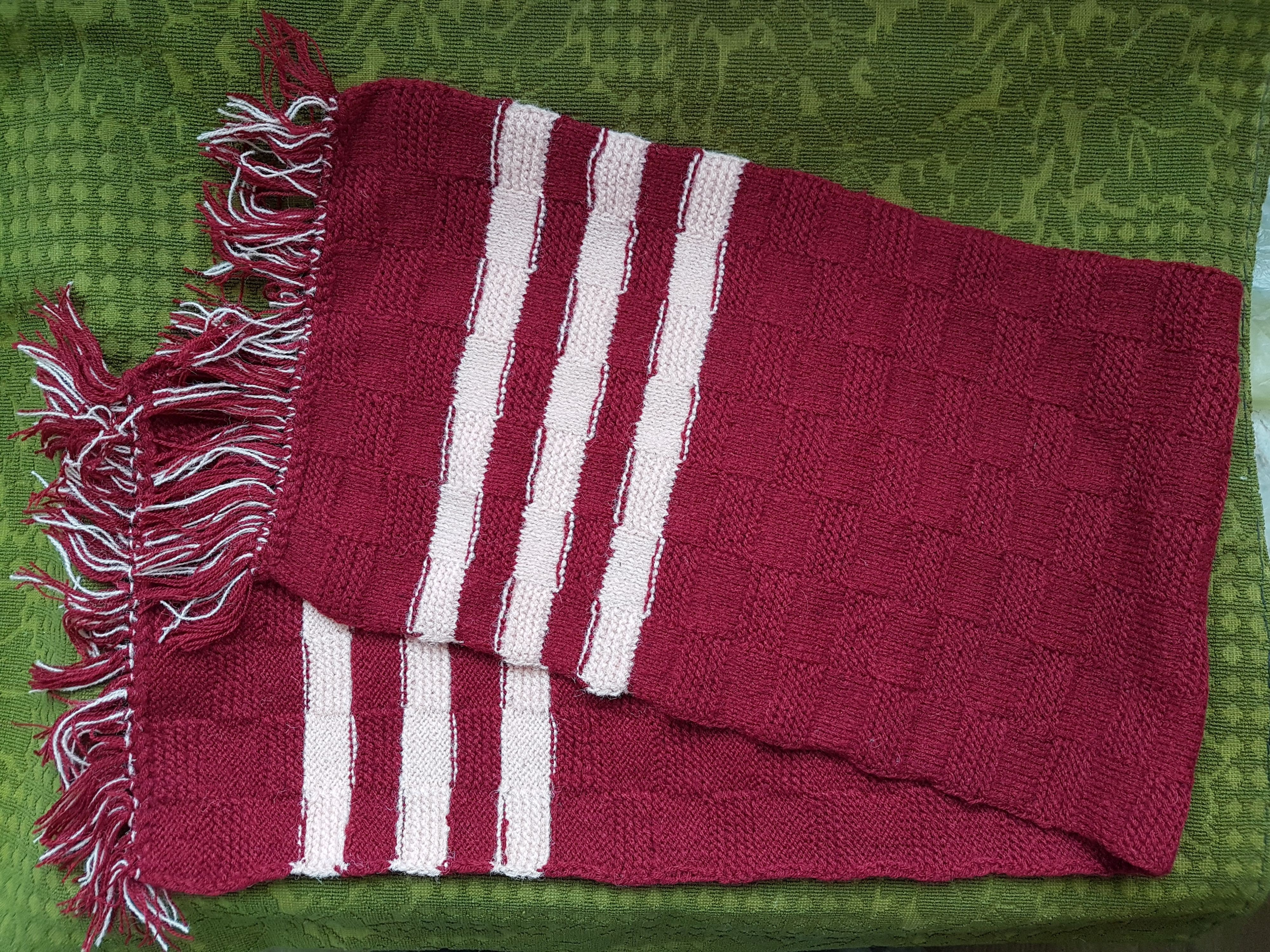 2-Fular lana,culoarea grena,cu dungi crem.