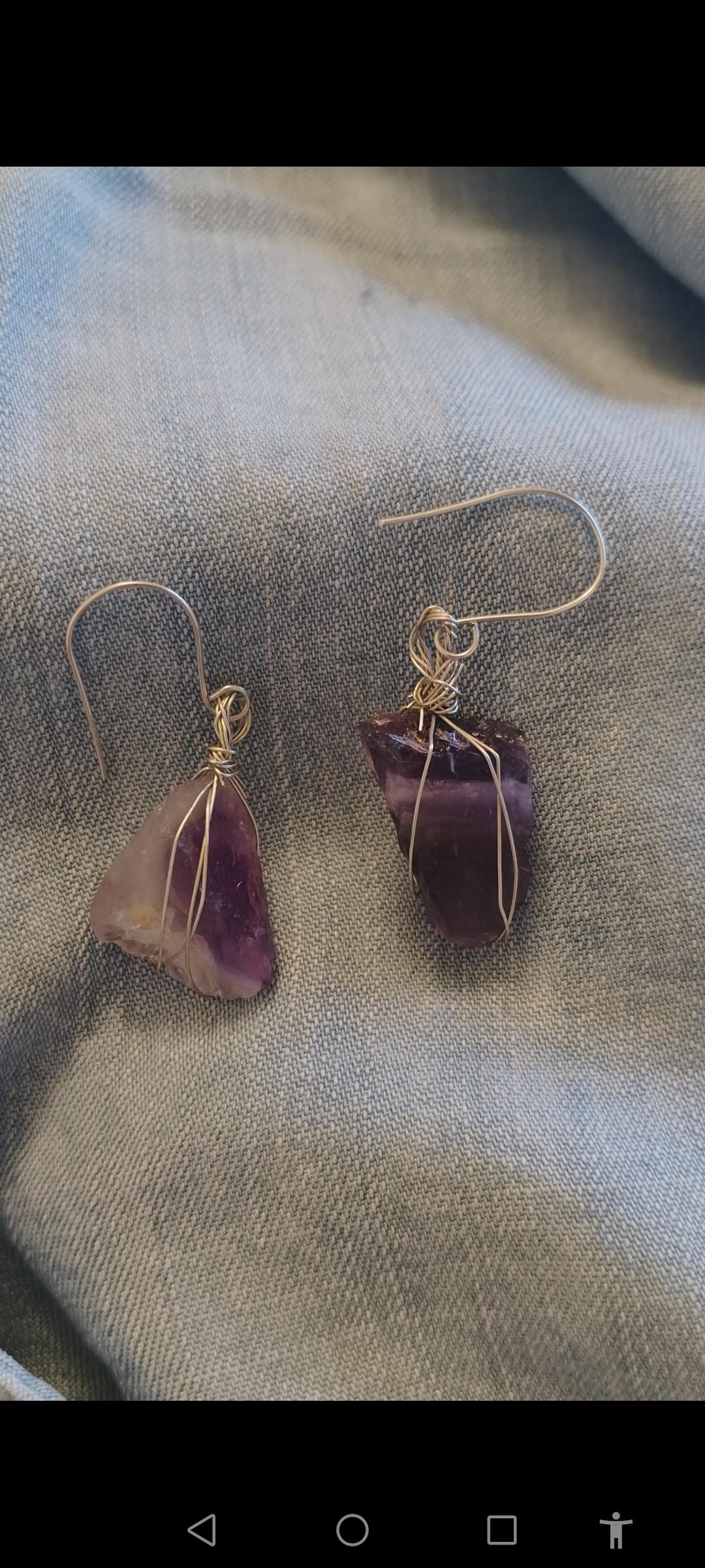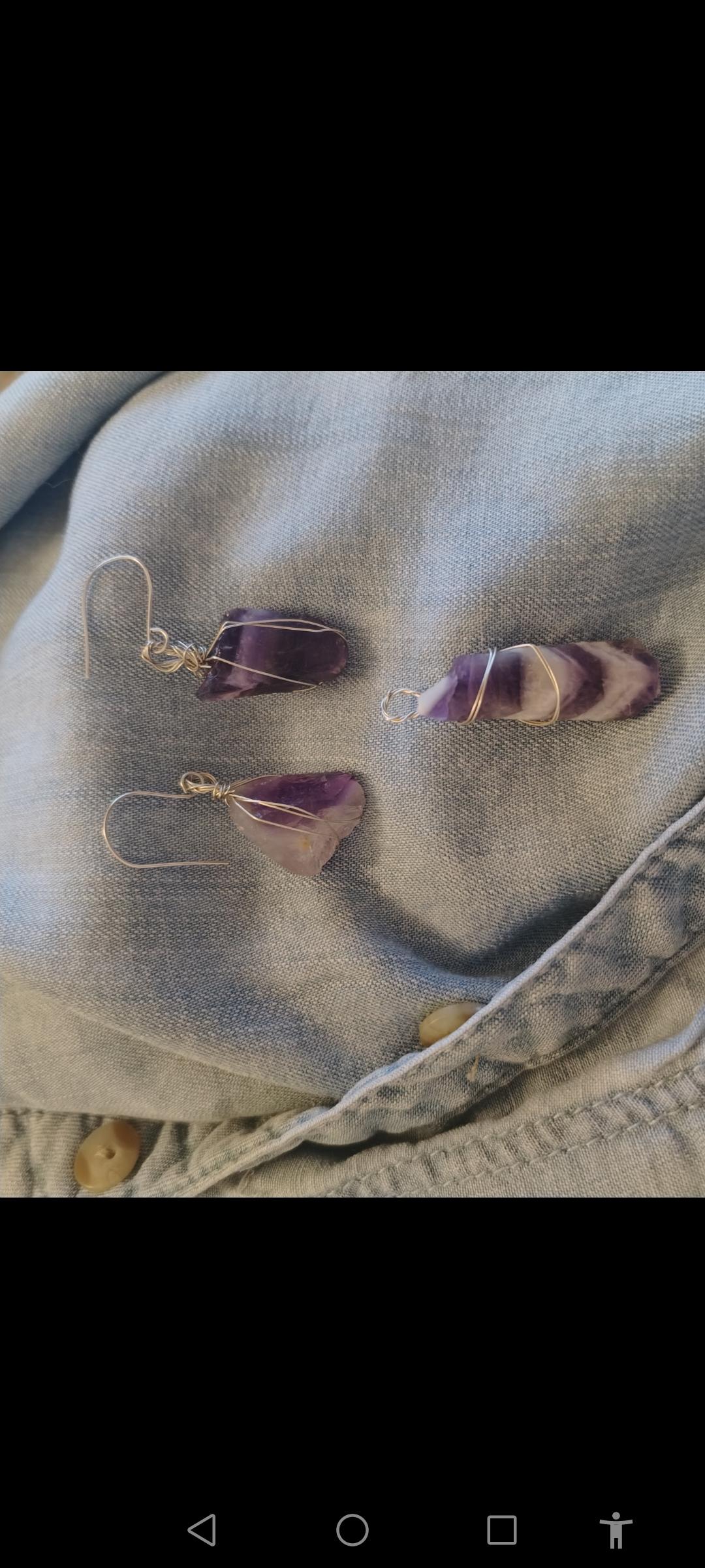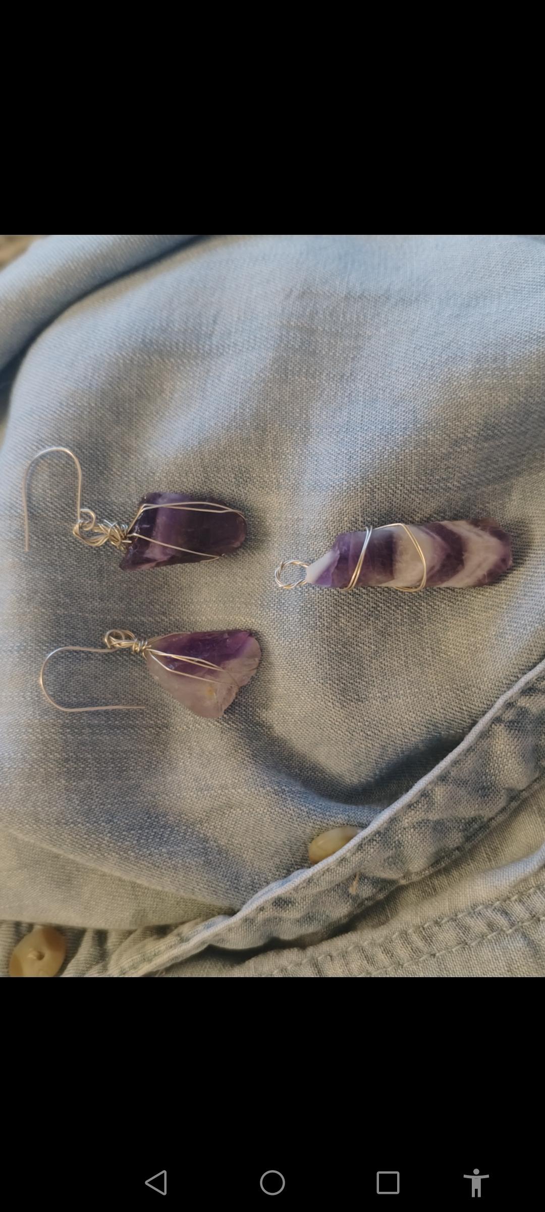 Cercei din argint 925 și ametist chevron brut, unicat, handmade