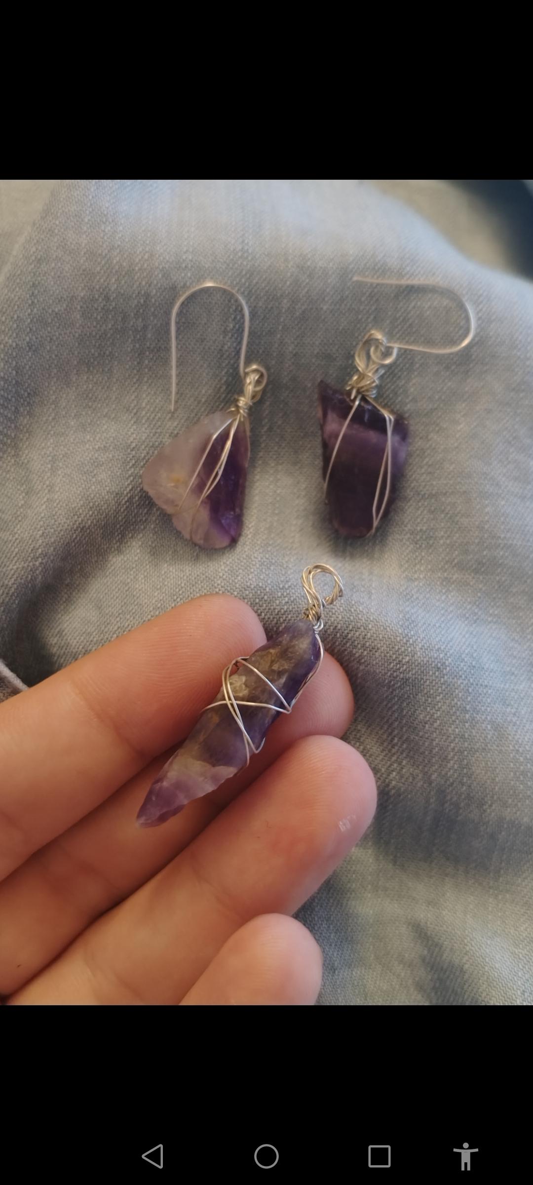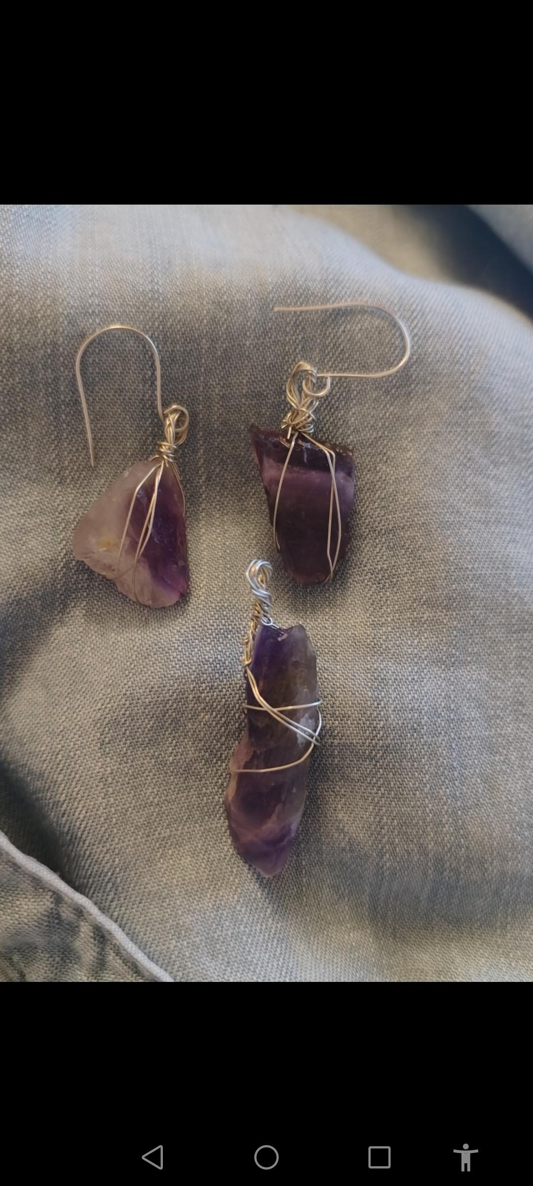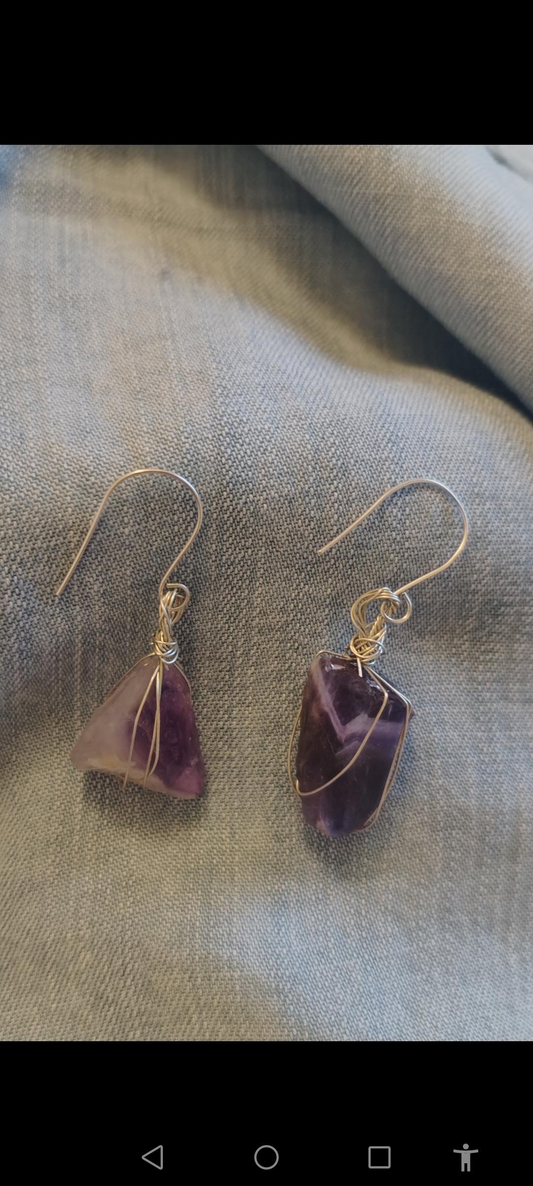 Cercei din argint 925 și ametist chevron brut, unicat, handmade