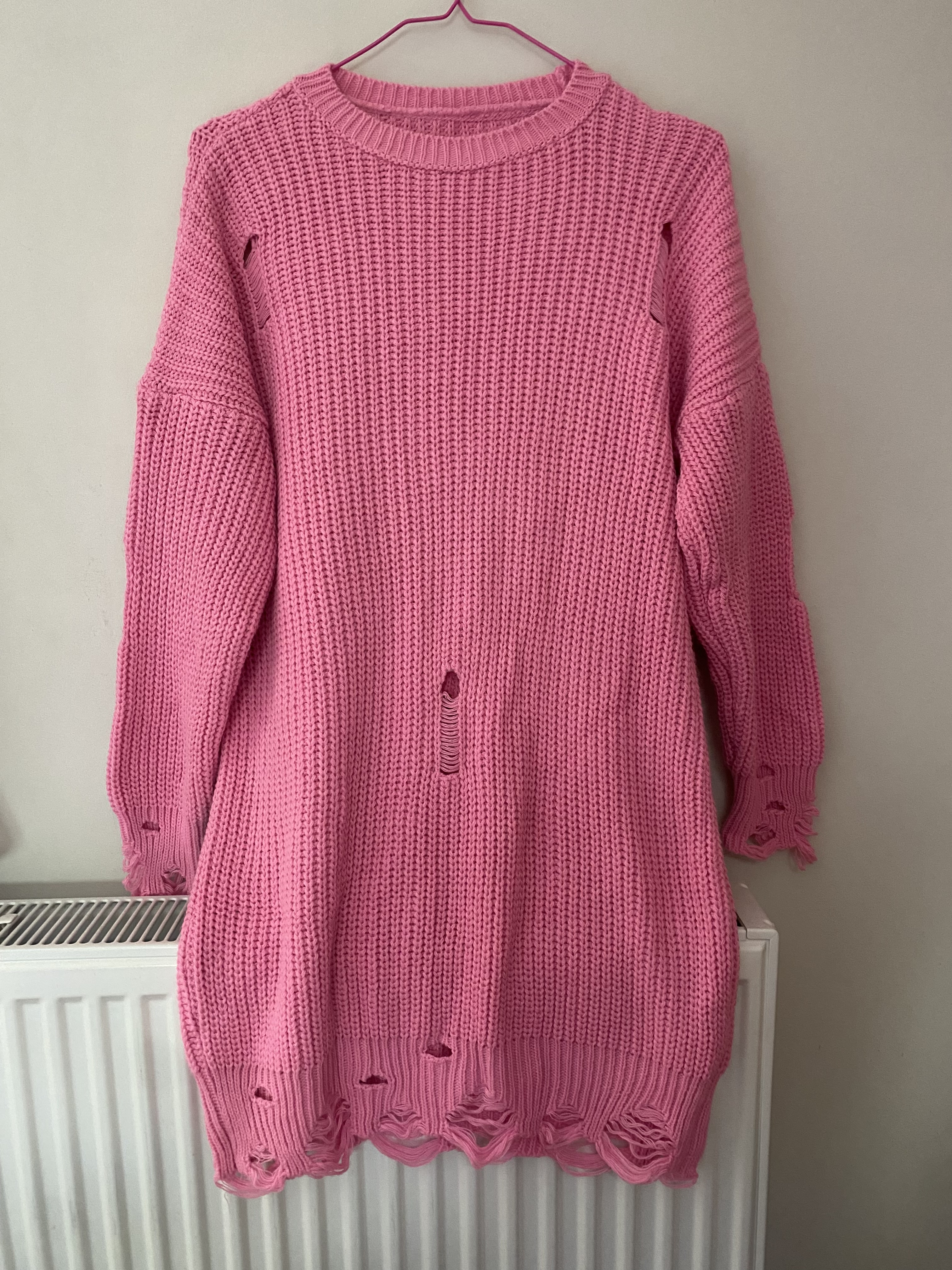 rochie pulover, marimea M (merge si pt L) este destul de elastic, culoare roz deschis, nepurtat.
