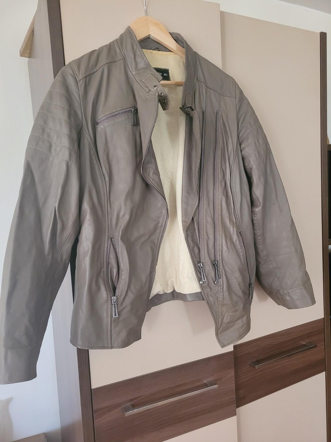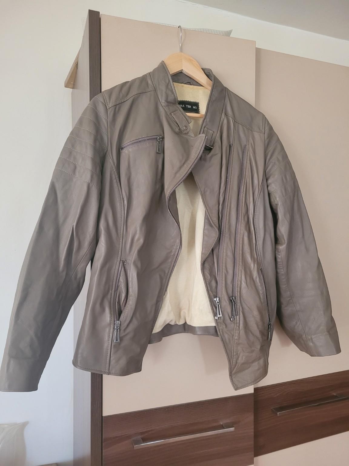 Geacă tip biker Fraterno, mărime estimată 44–46, maro taupe