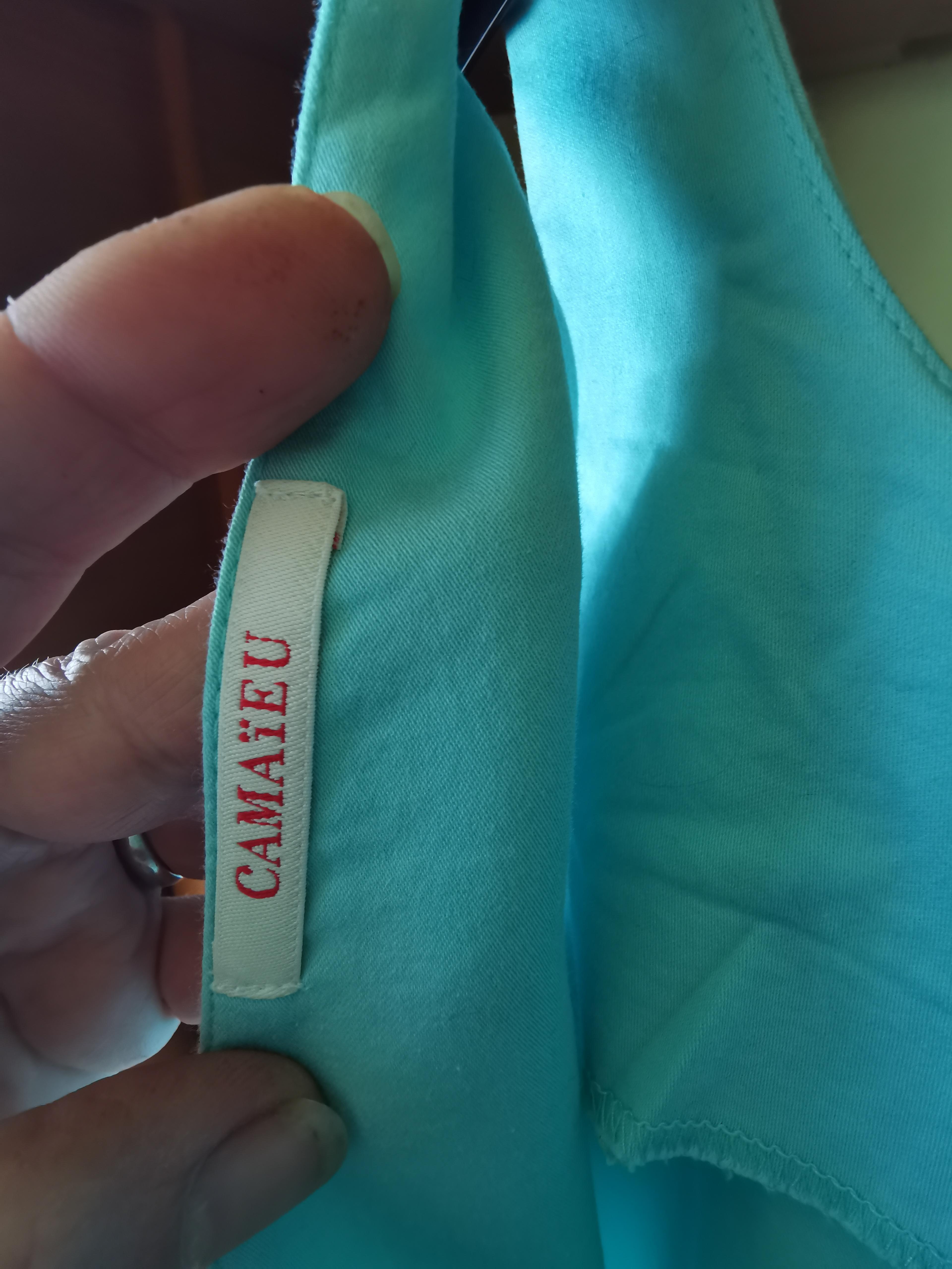 Două purtări, la baza gâtului în față, decolteu in V la spate. În stare impecabilă, fără defecte.