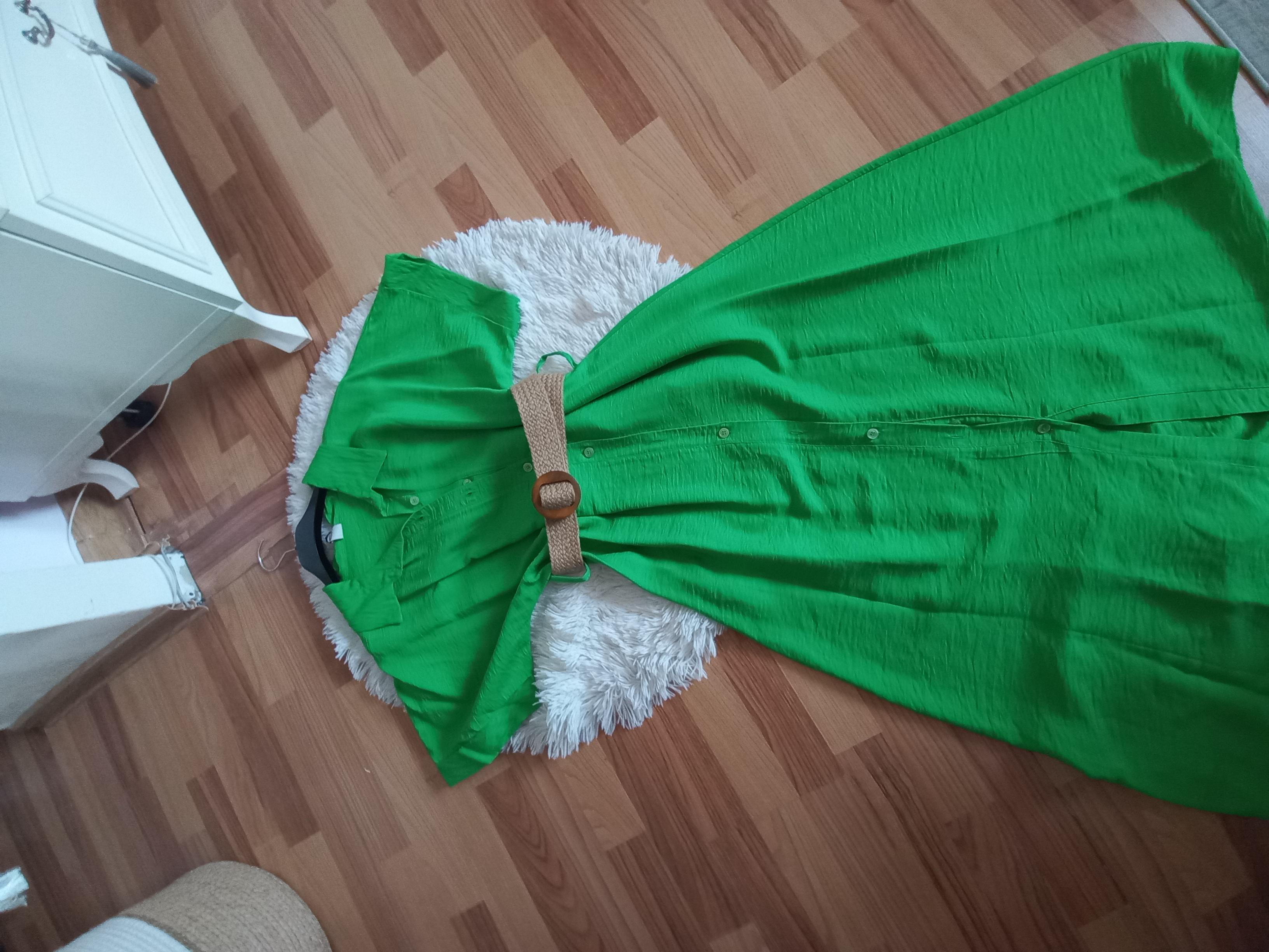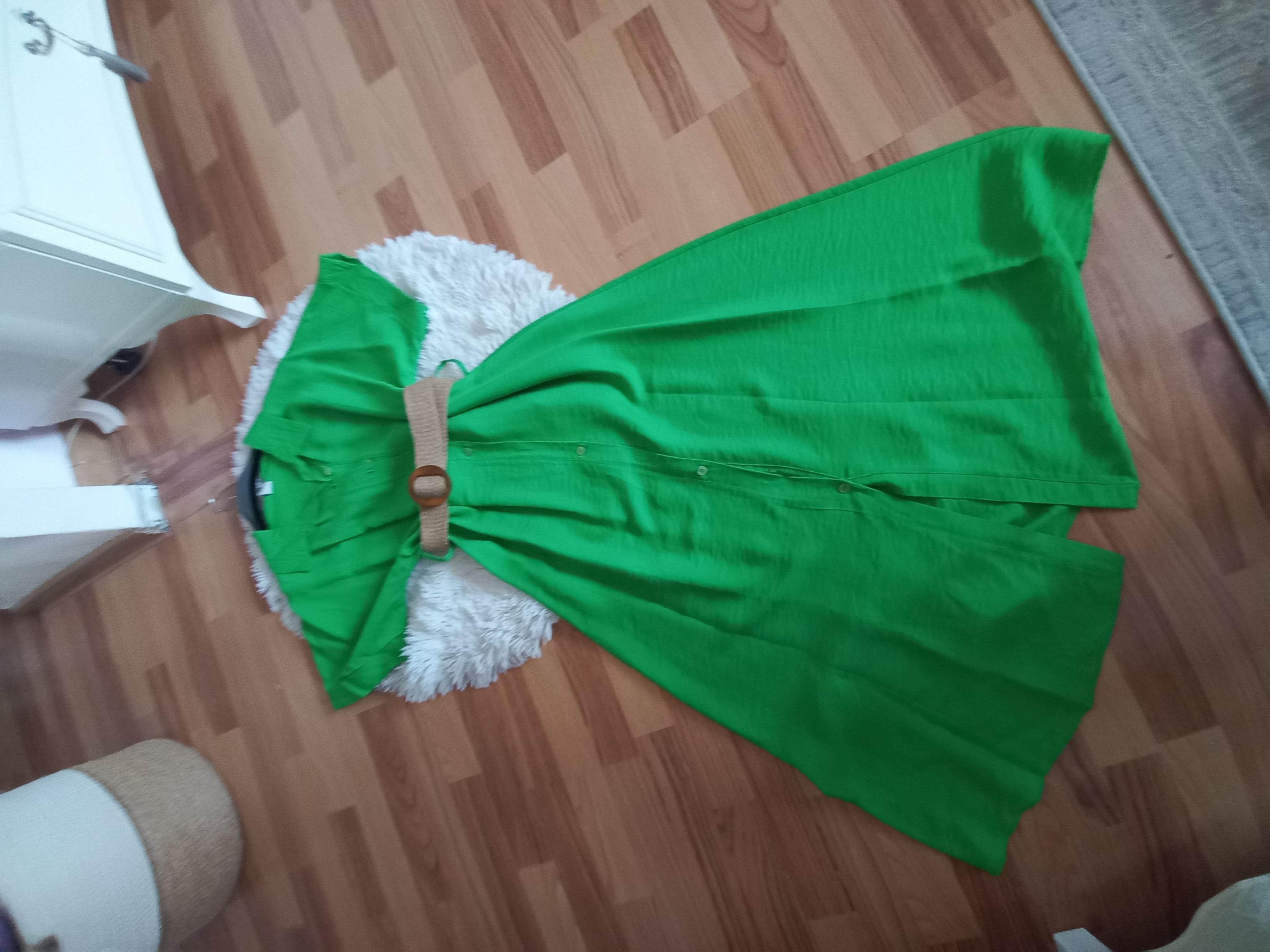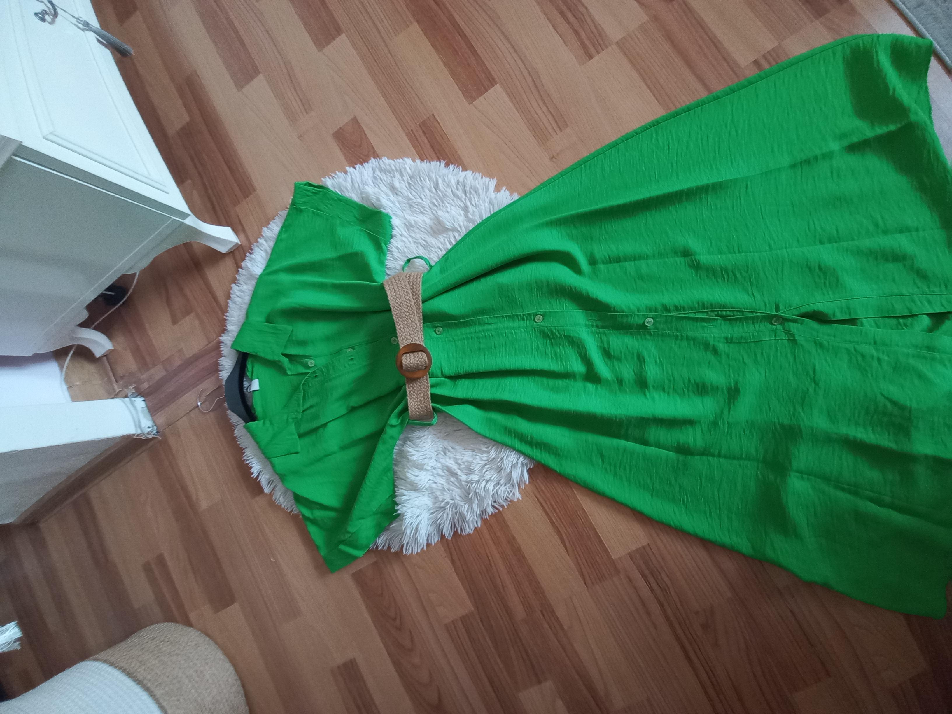 Rochie verde lunga,marime universala,cu curea ,noua,cu eticheta