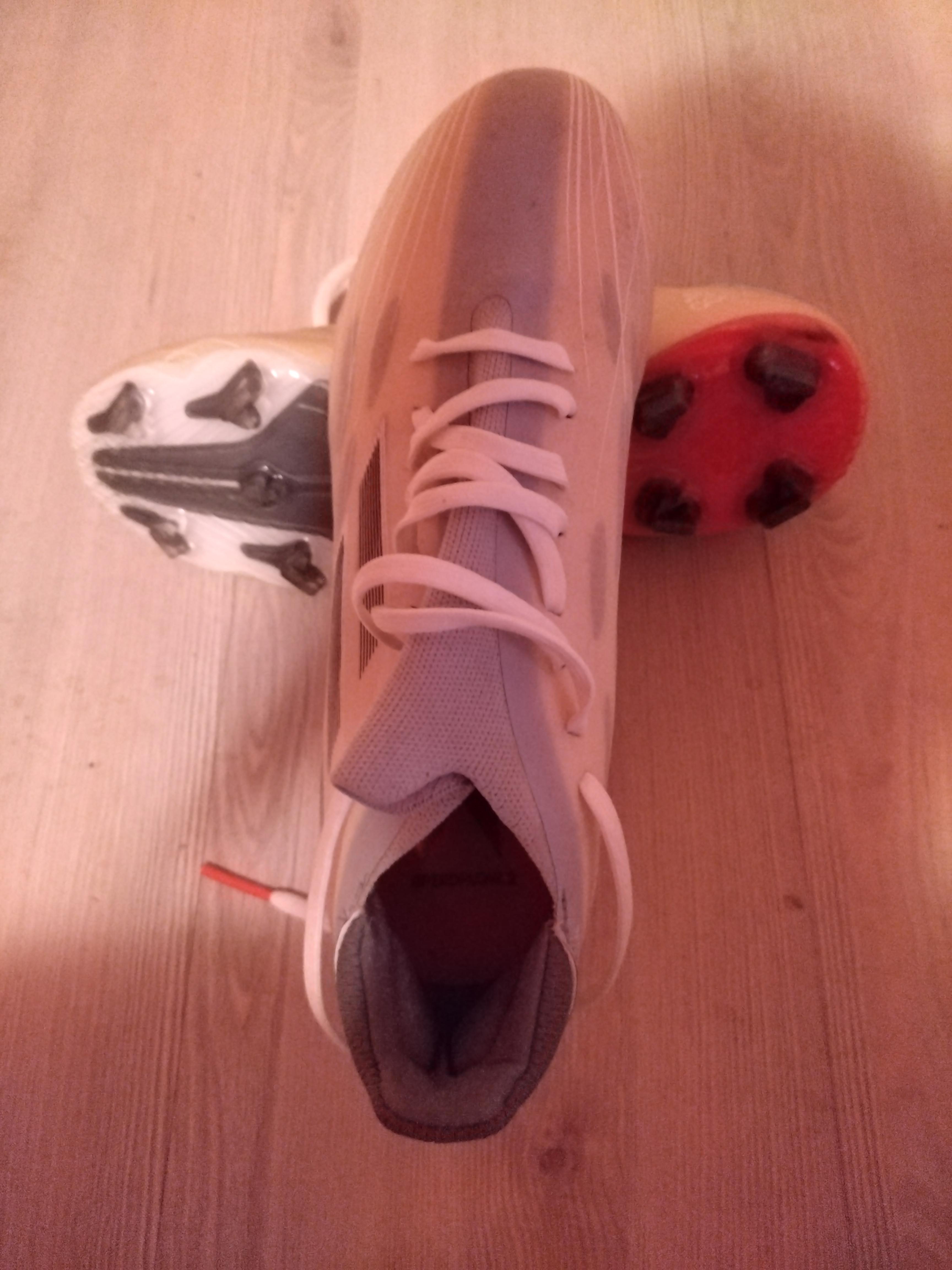 Crampoane folosite de 2 ori la antrenament, stare ca nou, brand Adidas, mărime 40 2/3, culoare alb-crem cu argintiu și rosu.