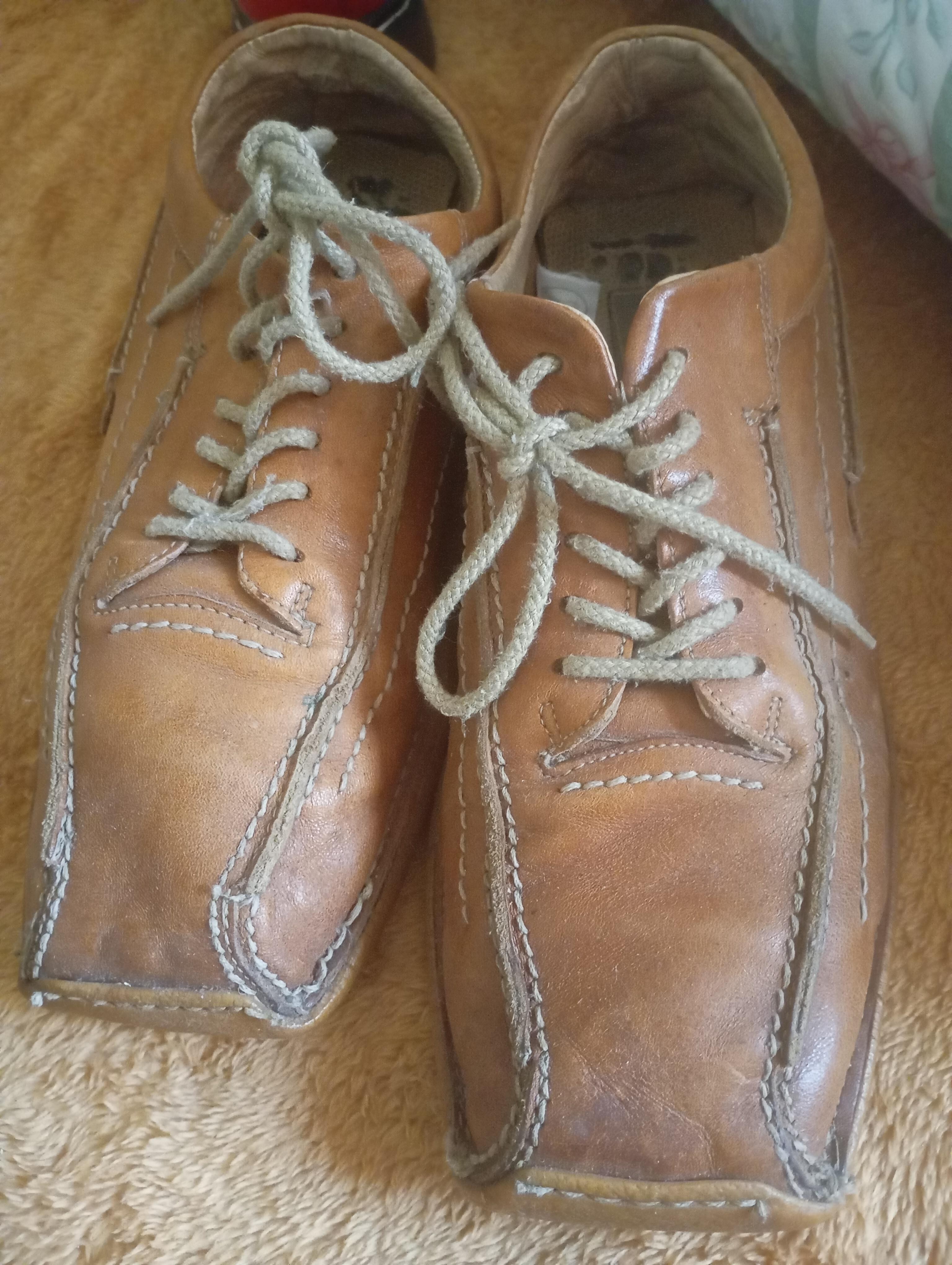 Vand pantofi piele naturala marime 41 culoare maro, cusut manual.