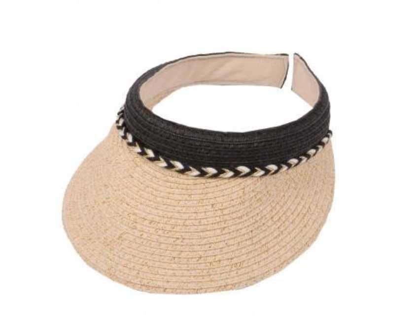 Cozoroc pentru soare, realizat din paie de hartie de culoare bej, decorat cu fire stralucitoare.