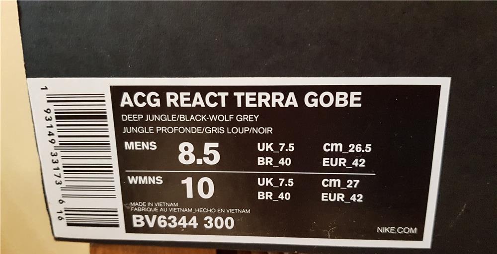 Pantofi sport Nike noi, in perfecta stare, purtati o luna( i-a crescut marimea la pantofi). Model Nike ACG REACT TERRA GOBE.