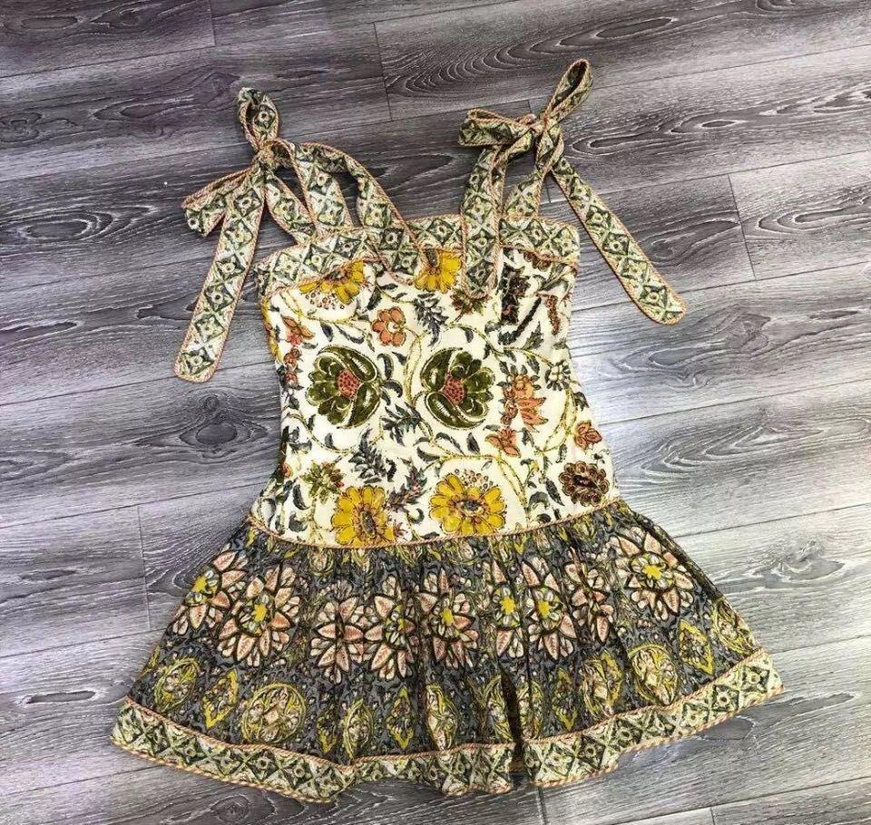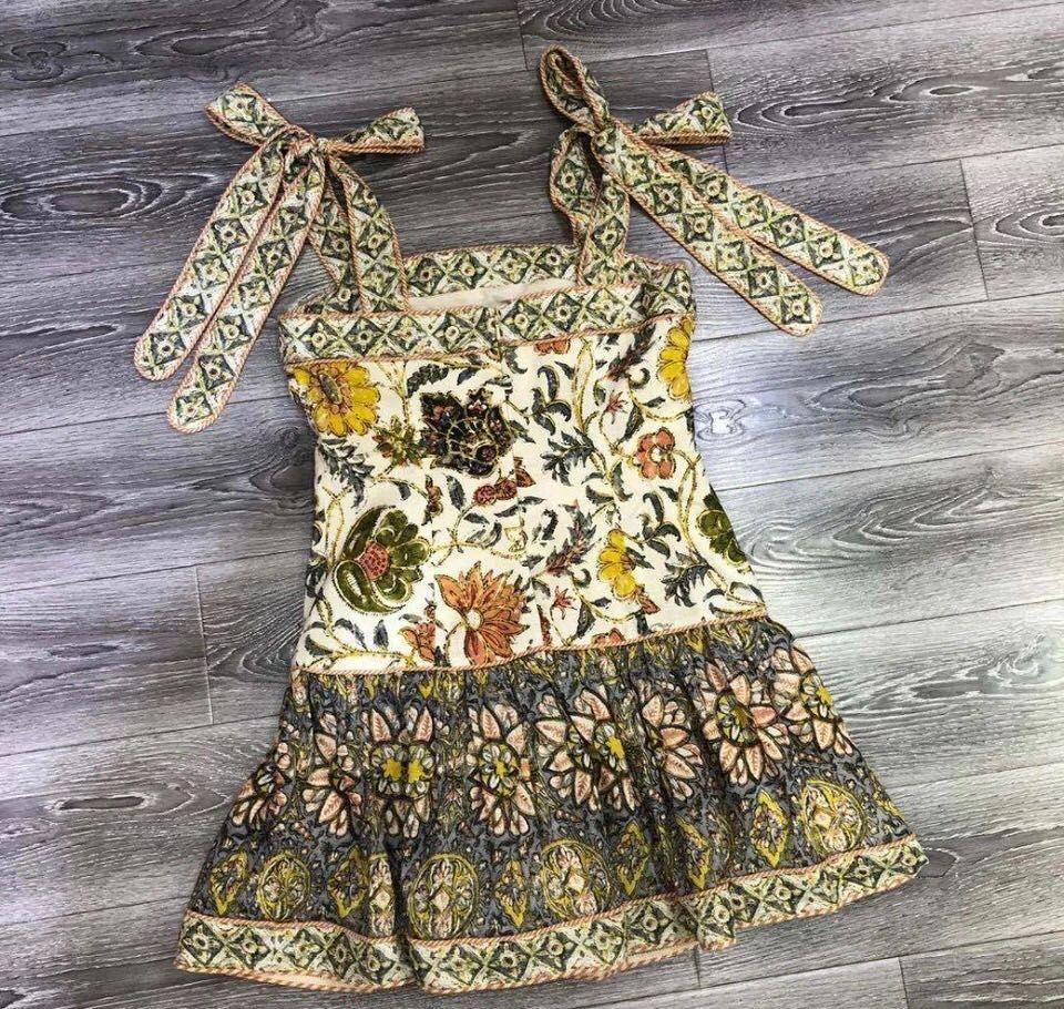 Rochie Edie bej a cunoscutului brand Zimmermann este imprimată cu flori în nuanțe de soare, o reflectare a lookbook-ului Resort 2020, care este inspirat din vechile super-opt filme ale vacanțelor sale în familie. Este realizată din pânză ușoară de in pentru o siluetă schimbătoare accentuată cu un tiv adunat ușor și bretele largi de umăr care se leagă în arcuri pe spate. Combinați-l cu sandale pentru a surprinde estetica față de plajă.