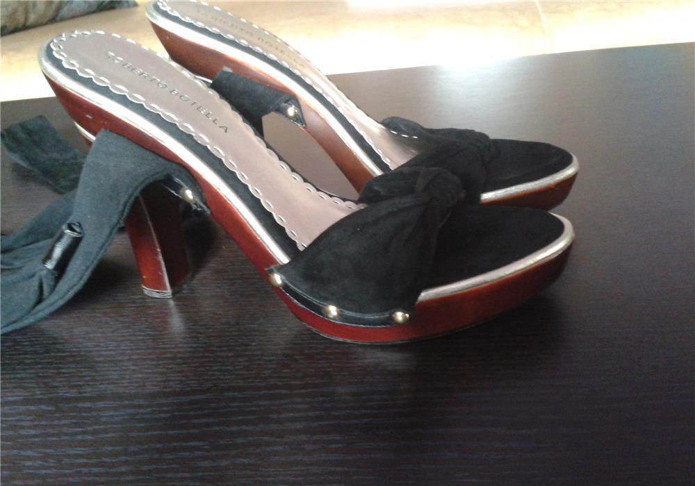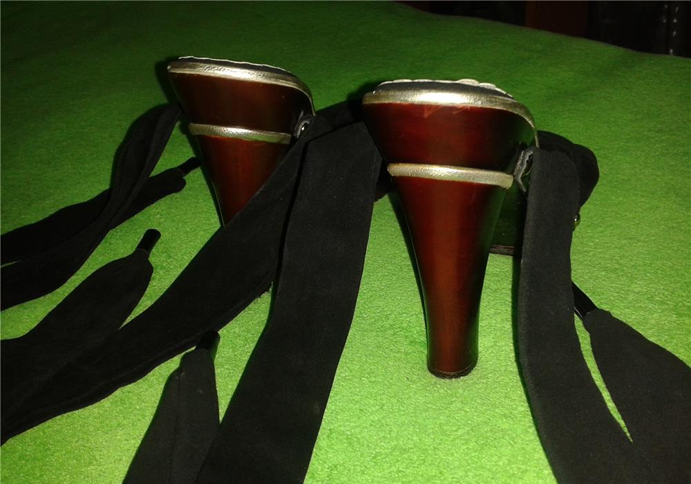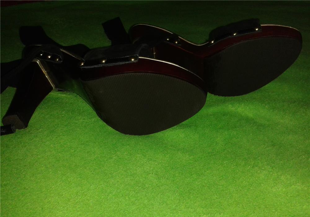 sandale de seara si nu numai,noi, cu barete dintr-o catifea stil piele-ntoarsa neagra care se leaga pe picior dupa preferinta,pe glezna sau ca-n imagine,aduse din Anglia,lungime talpa interior 26,sunt comode pe talpa interioara avand lipita o talpica moale,aurie