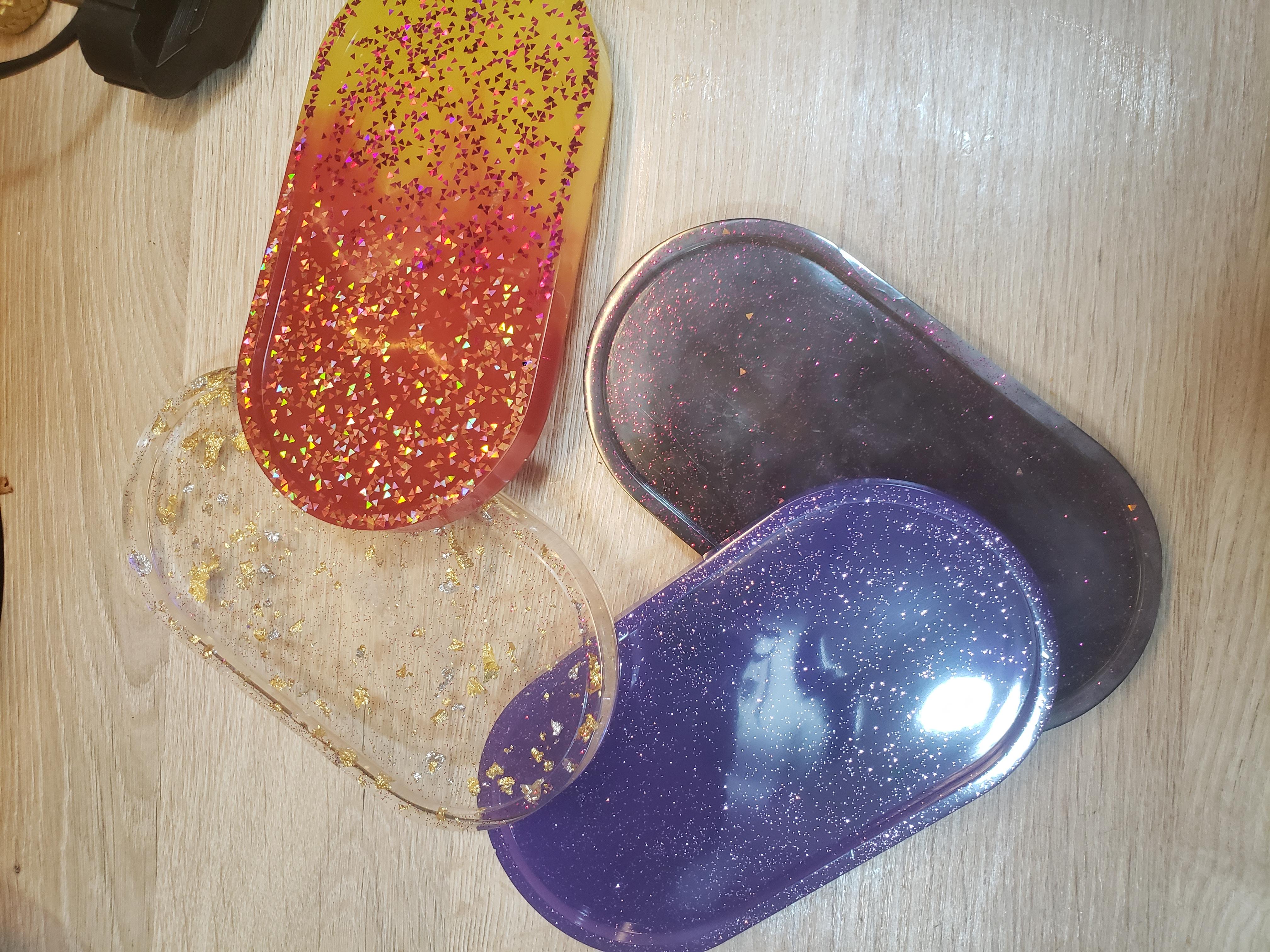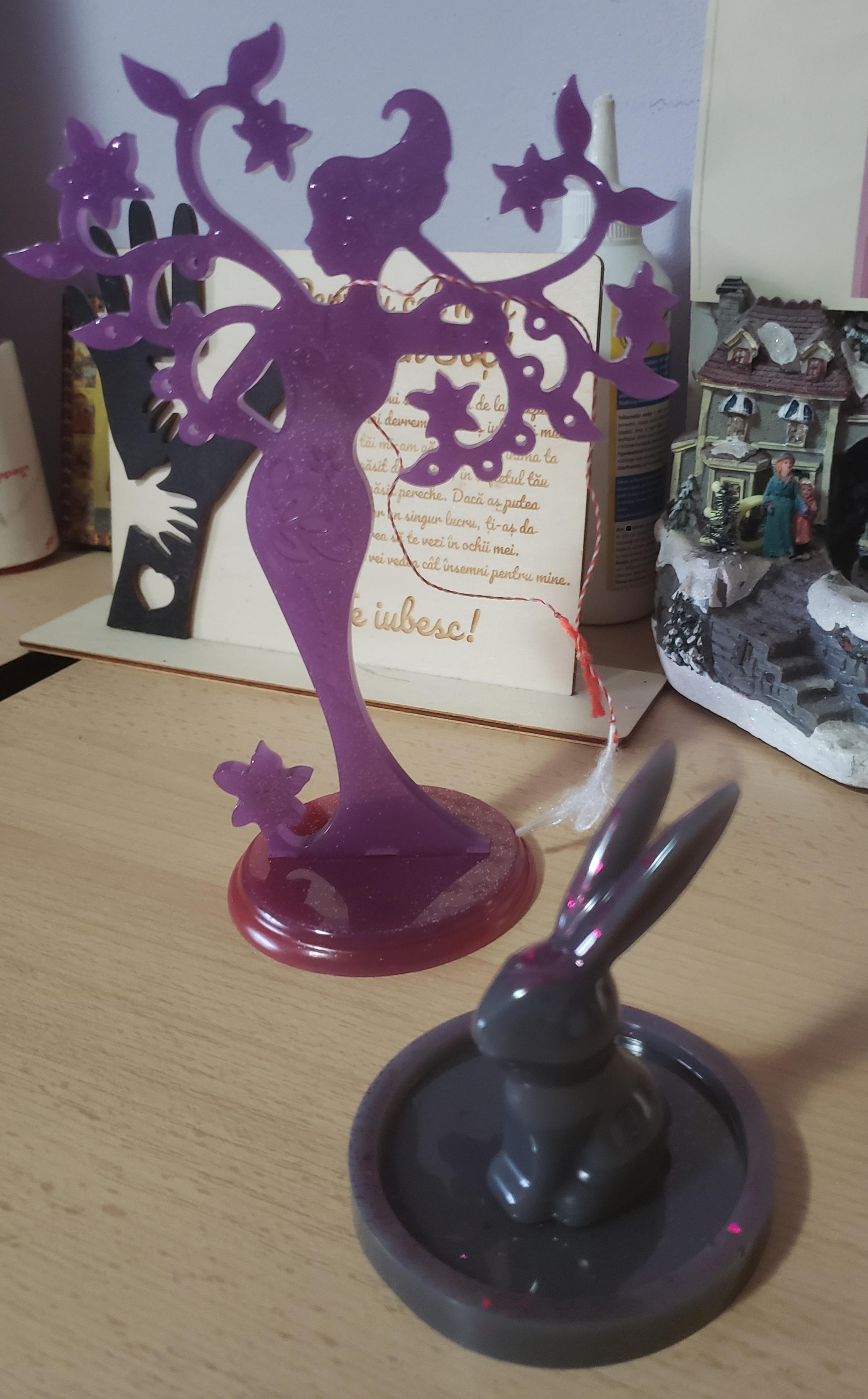 Diferite obiecte handmade din rășină, rezistente la apa, foc, frig, se pot folosi ca atare sau ca decor. Silueta fata si iepuraș suport pentru bijuterii, tavitele se pot folosi la servirea unui mic desert, fursecuri, săpunieră, suport telefon, .....