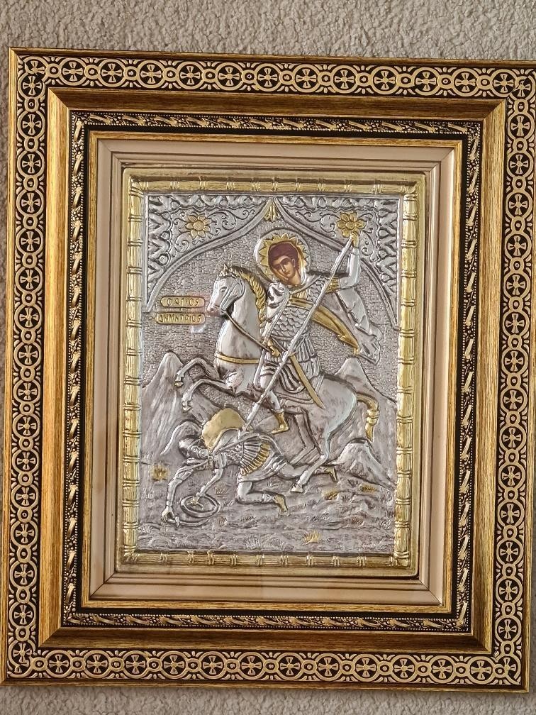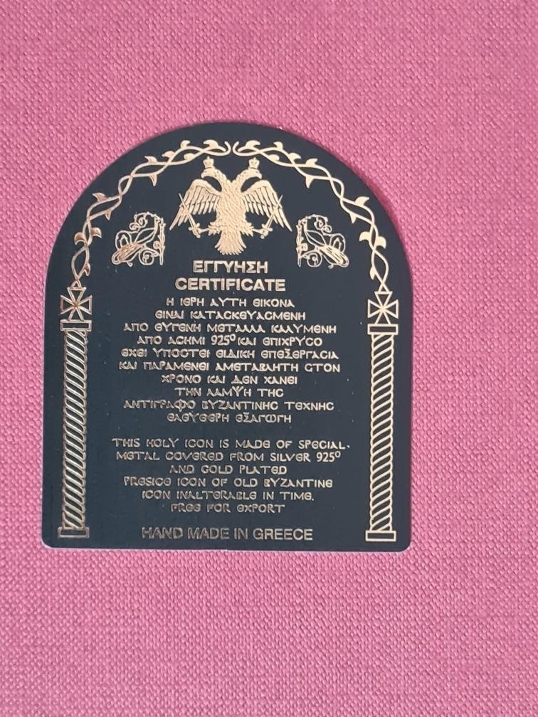 Icoana Argintata ,lucrata manual, cu certificat de autenticitate, cu o superba rama filigranata , sticla de protectie, impact vizual de exceptie. Ideala pentru un cadou deosebit. Dimensiuni :50x40 cm. Livrare prin curier. Executata in Grecia. Dublu rama de lemn Sticla Certificat silver 925 Sistem de prindere pe perete.