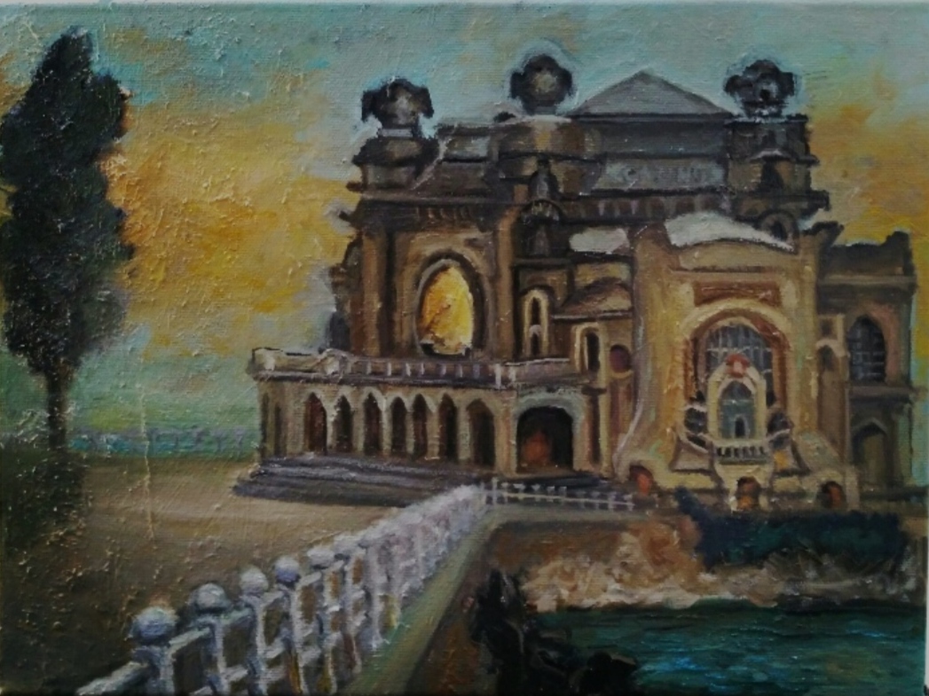 Pictură în ulei pe pânză cu șasiu, nu necesită înrămare, dimensiuni 30/40 cm, peisaj urban