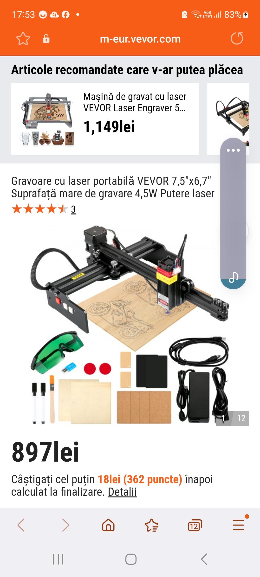 De vânzare aparat de pirogravura Laser L1717, Vevor.