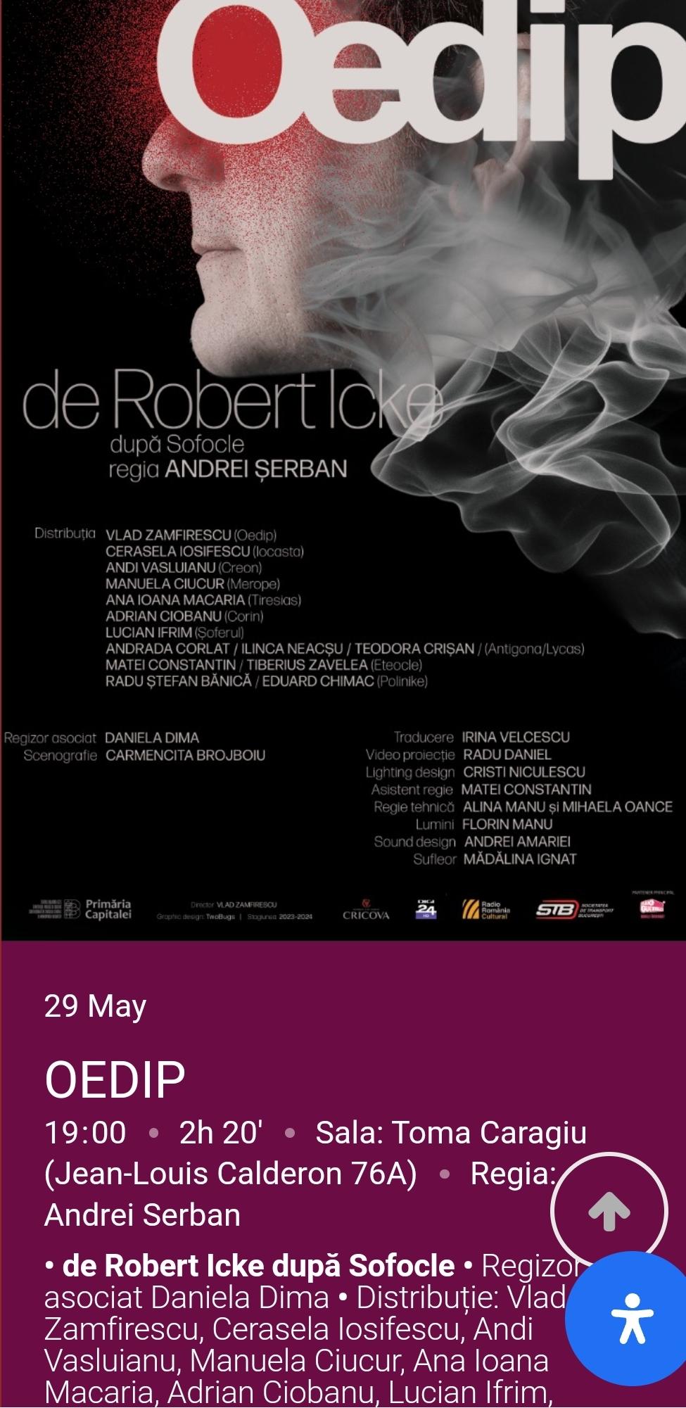 Vand 4 bilete la teatru Bulandra, sala Toma Caragiu, piesa OEDIP, pt joi 29.05.2025, ora 19:00