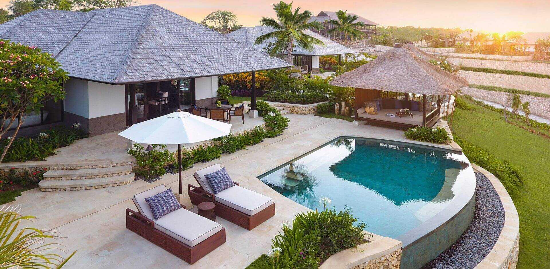 Coborând în cascade pe versantul dealului spre Oceanul Indian, Raffles Bali reprezintă apogeul luxului rafinat, în armonie cu natura. Cele 32 de vile de pe malul oceanului, fiecare cu propria piscină și grădină, oferă liniște și intimitate pentru a încânta sufletul, cu priveliști spectaculoase asupra golfului Jimbaran, care par să se întindă la nesfârșit.