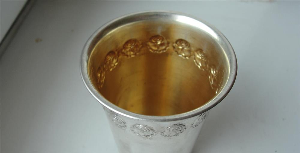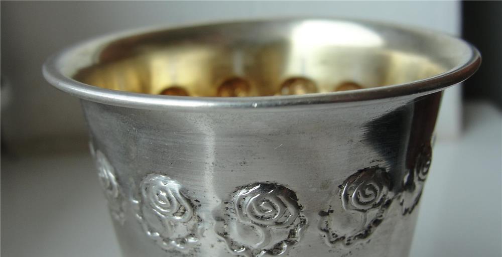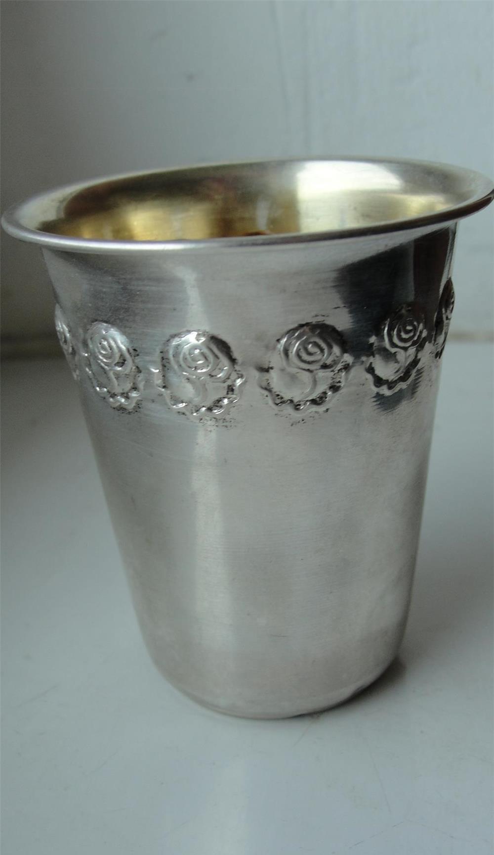 Frumos si vechi pahar din argint, stanta 800 , necuratat ,anii 1900-1930 ,Dimensiuni;Inaltime 7 cm;Diametrul ''gurii'' 66 cm, greutate 28 grame ,capacitate cilindrica 80 ml. Se adauga transportul la aceasta valoare. Cu Posta Romana va costa 17 lei. Si prin Fan Curier trimit,