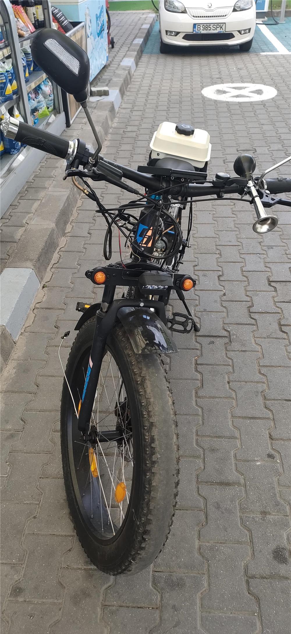 Bicicletă asistată cu motor în 2timpi pe benzină ! rezervor de 3 litri, consum de 1.8%. Viteza maximă de deplasare este în jur de 55km/h. Urcă fără emoții orice fel de rampă. Publi24_1656435305 07xx xxx xxx Arata telefon