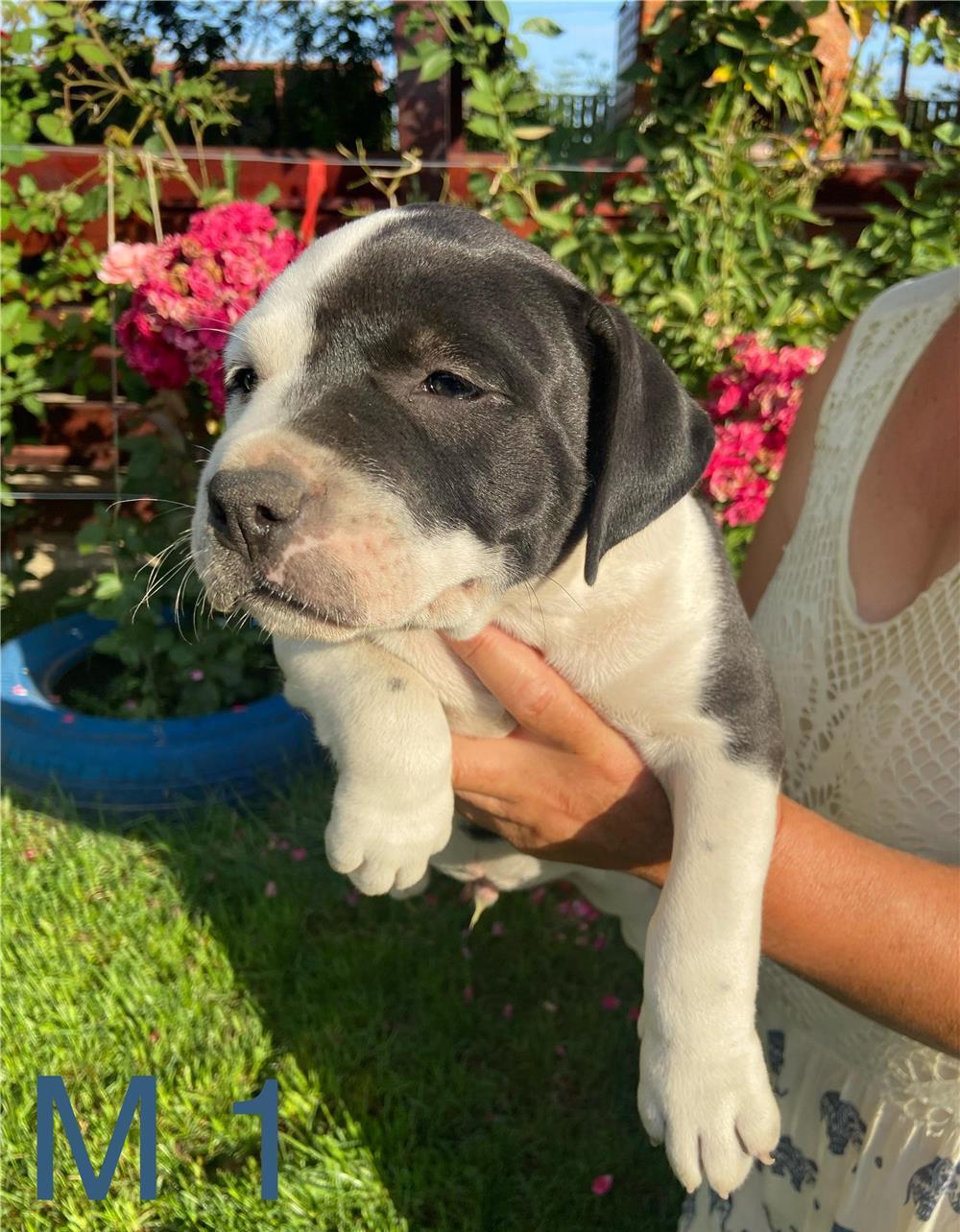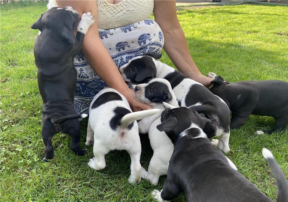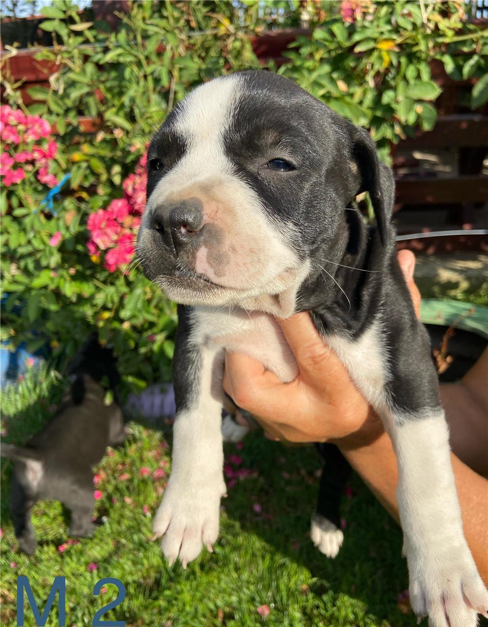 Amstaff pui proveniți din părinți foarte bine dezvoltați, după cum se poate observa din imagini, tatăl alb cu negru iar mama blue. Puiuții au 6 săptămâni, carnet de sănătate, ambele deparazitari interne, primul vaccin și mănâncă hrana solida de 2 săptămâni. Dacă aveți peste 18 ani și sunteți iubitori de animale și într-adevăr puteți avea grija și timp de un cățeluș, ma puteți contacta la telefon/whatsapp la nr. .