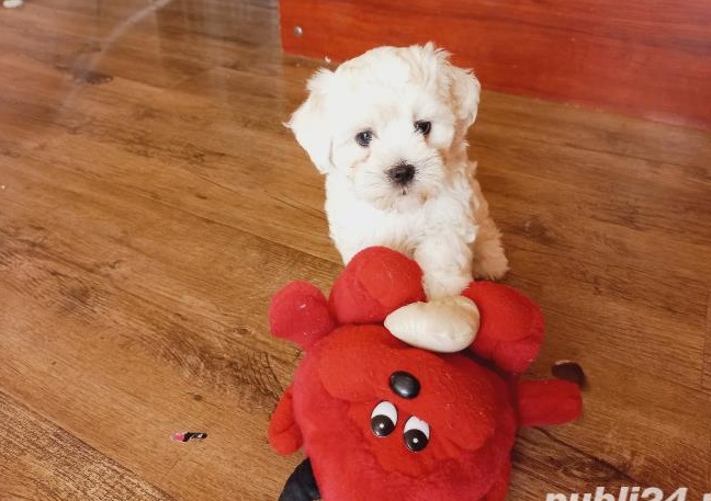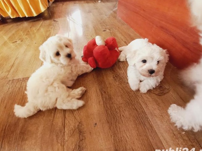 Vand bishoni albi 8 saptamani,femela si mascul.Detin carnet de sanatate cu toata schema facuta conform varstei.Patintii au in jur de 6 kg.