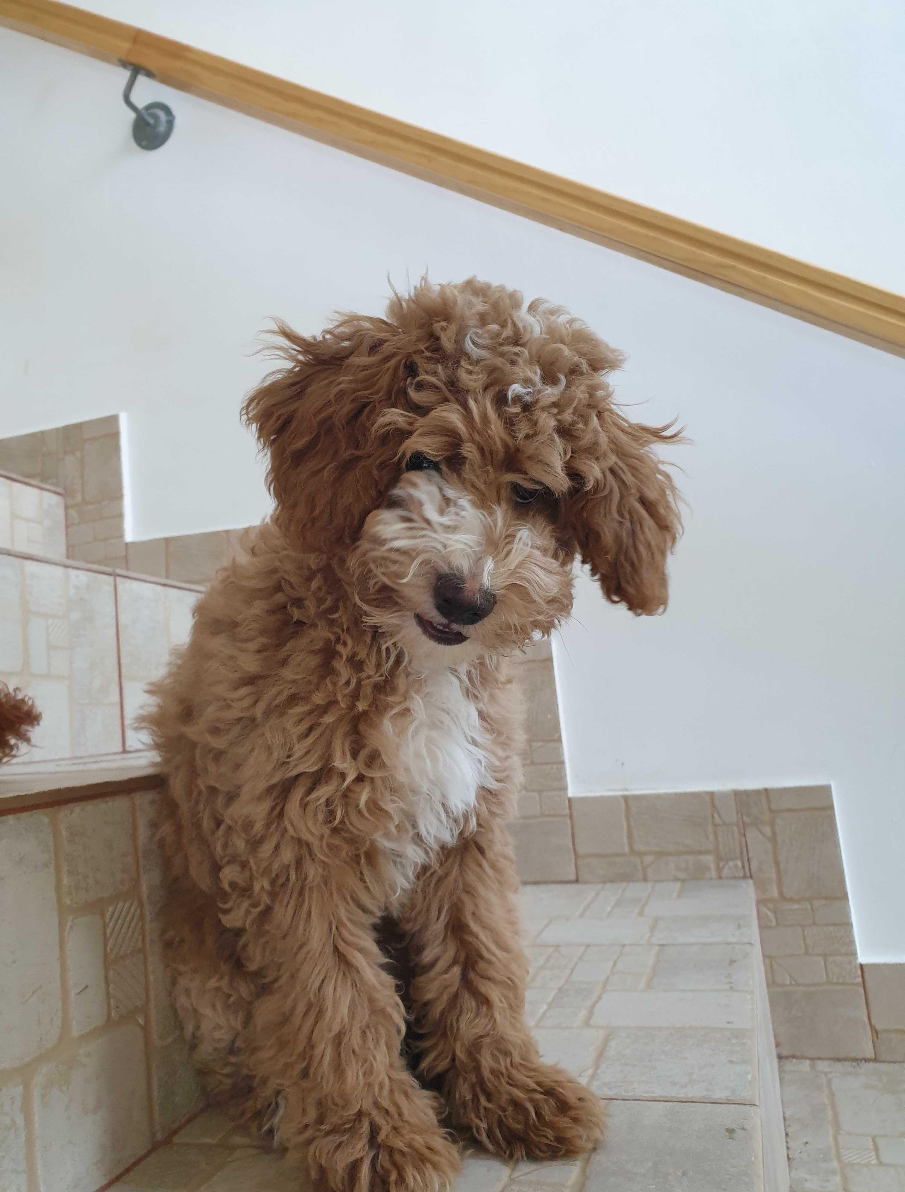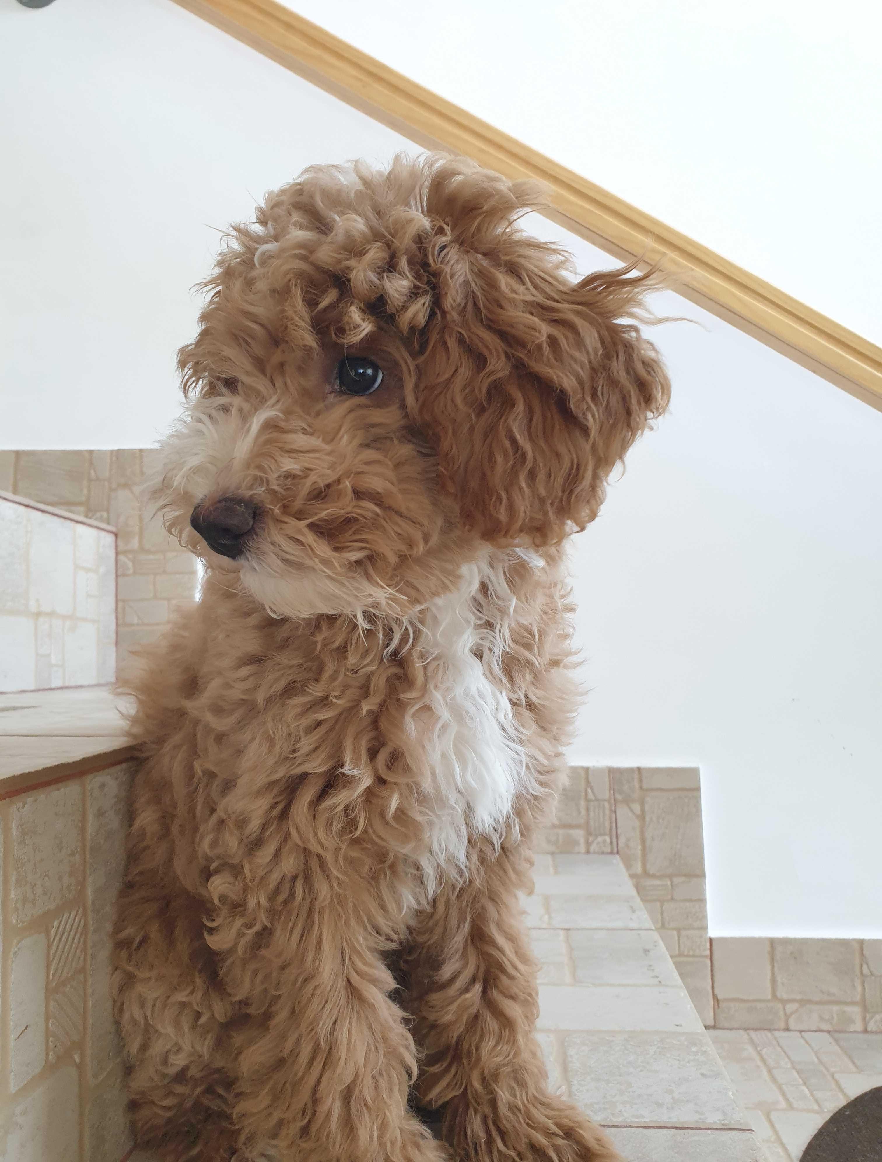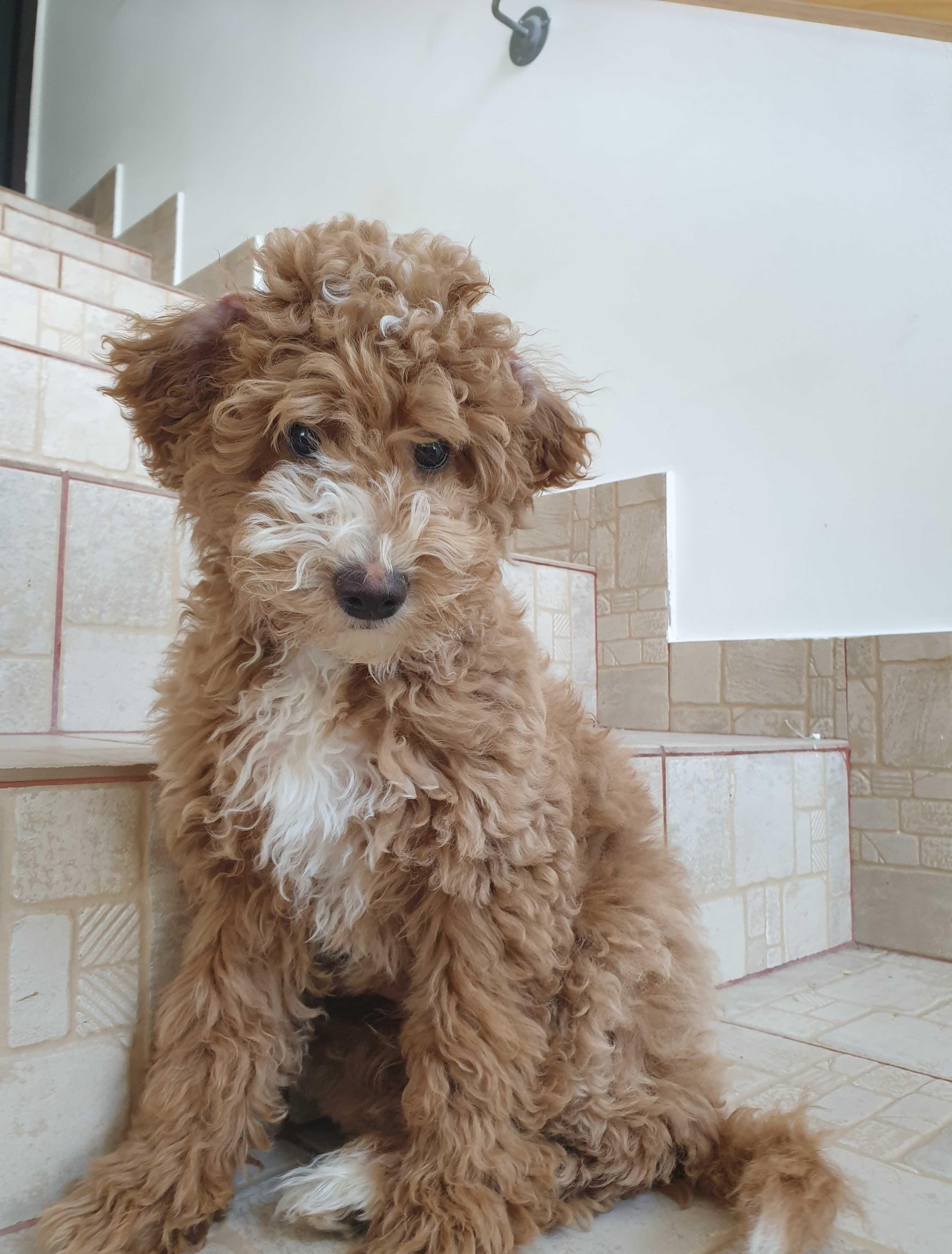 Pozele 1-4: un baietel miniature/pitic, light red cu botic alb, mama miniature apricot, tatal miniature red, pozele 5-8: o fetita miniature apricot, tatăl talie miniature, red, mama talie medie, alb.