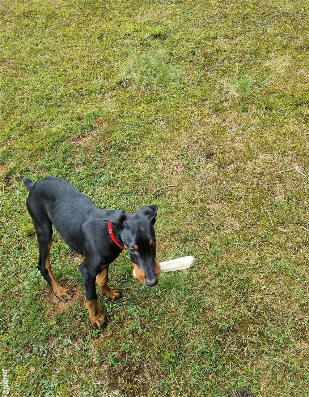 Vând mascul de doberman ( rasă pură ), se pot vedea ambii părinți.Cățelul are cip, este inregistrat, are absolut toate vaccinurile făcute la zi, deparazitările atât interne cât i externe, zgardă, lesă, carnet de sănătate i jucărioare. Cățelul a fost crescut exclusiv cu mâncare de la K9 junior lamb&rice urmărind foarte atent cantitatea consumată. A fost crescut la munte, musculatura este foarte bine formată, este jucăui obi nuit cu al i câini. Se vinde din singurul motiv in care trebuie să părăsesc țara i locația nu îmi permite să îl iau cu mine.Î i caută doar un stăpân care să se ocupe de el. A fost achizitionat cu 1900 lei + vaccinuri/ mâncare de calitate/ jucarii/ etc.Tariful cu care îl oferim este de 1200 lei. Cu o discuție în prealabil cu viitorul stăpân.